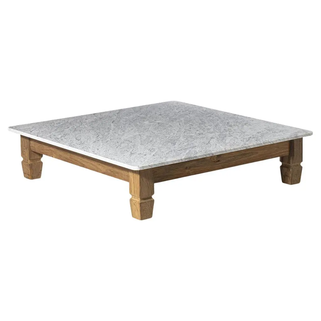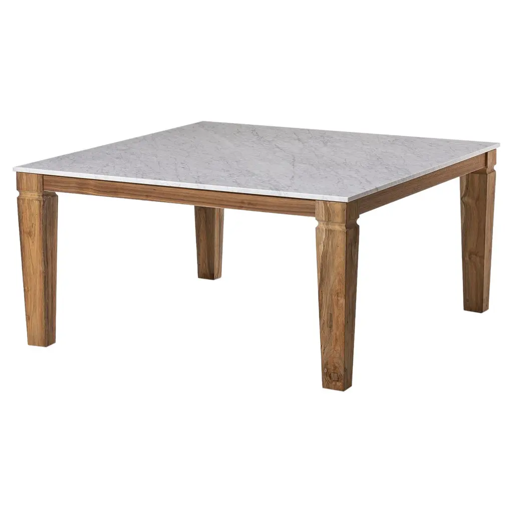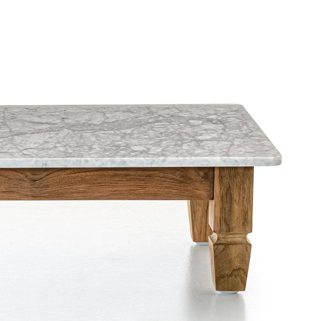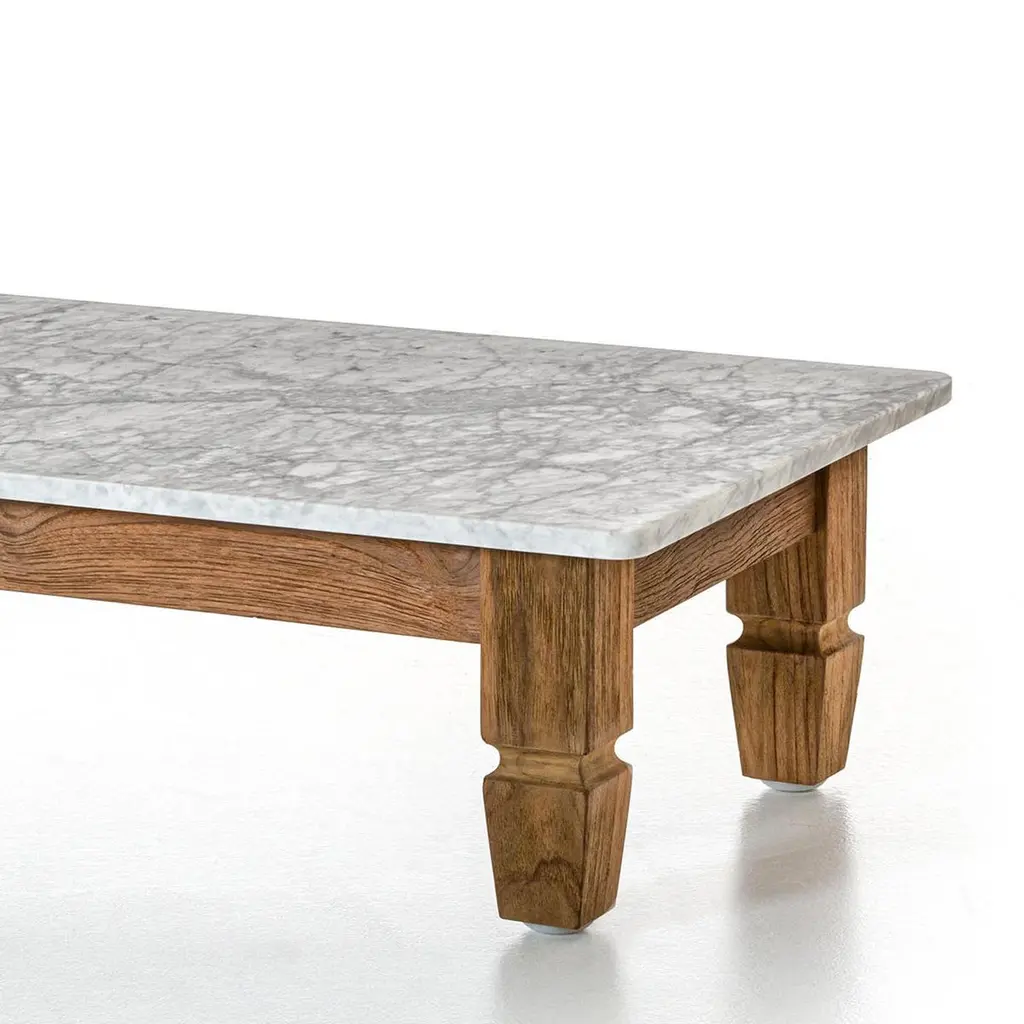 Coffee table Barletta rectangular structure in solid teak.wood and with polished carrare white marble top.