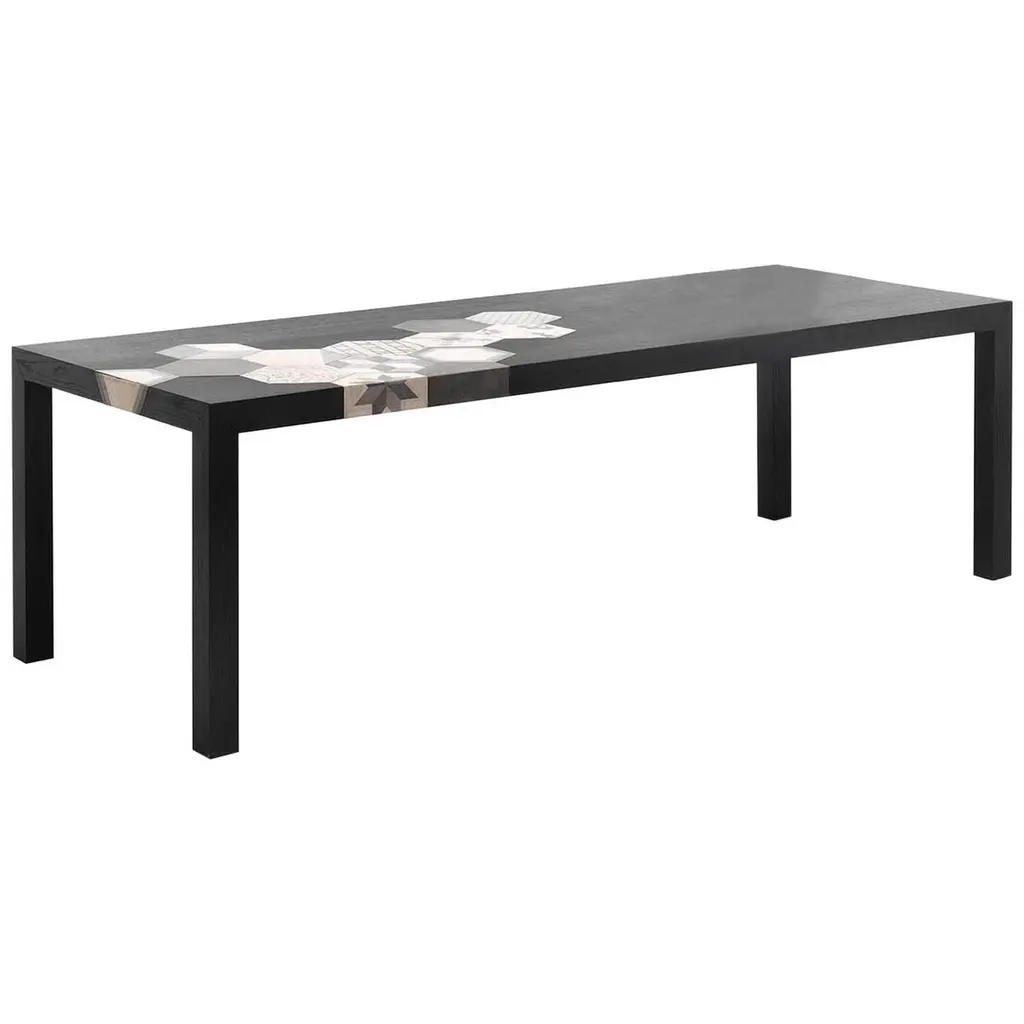 The family of Barretta Coffee Tables designed exclusively by Patricia Urquiola for Budri is made from alternate onyx and marble stripes in different materials – Verde Ming, Nero Assoluto and Yellow Onyx among the others – arranged in a fishbone or linear pattern. Barretta Coffee Tables allow a free and versatile composition. Also available in other sizes, please ask the Concierge for further information.