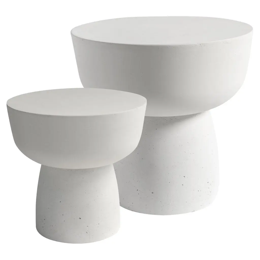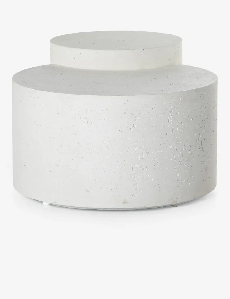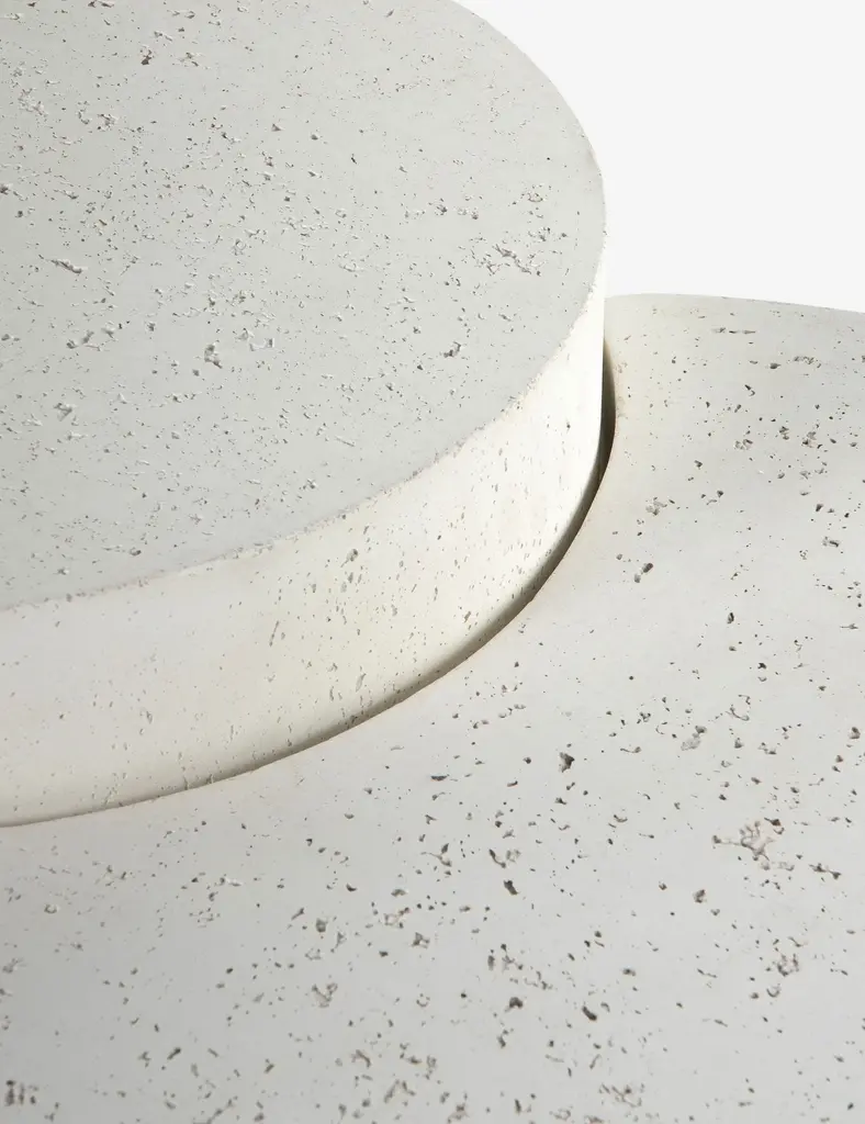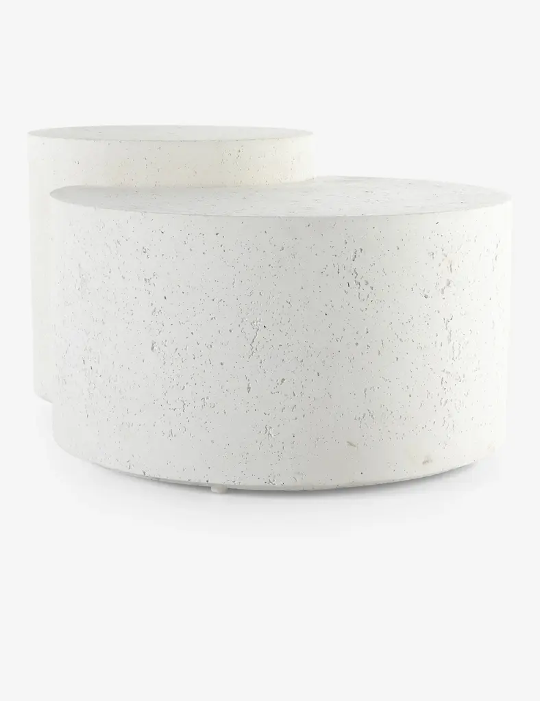 A spare, refined silhouette defines this nesting concrete coffee table with its white, pitted finish that takes a cue from mid-century coral decor. It will bring a sculptural element to a space as a middle table and can be styled with a luxe vignette for a baroque maximalism or left unadorned for a pared-down fresh, modern look.