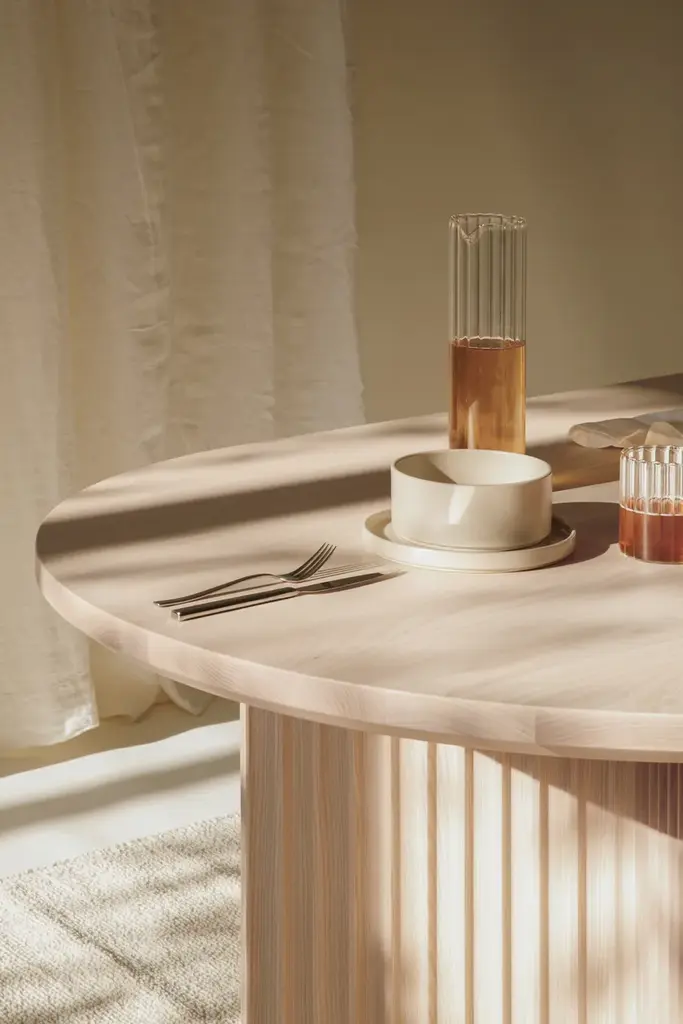 Basalto minimizes its architectural elements to enhance their visual value. The simplicity of the top and the pattern on the legs produce a contrast of thicknesses and rhythms. Basalto is designed to minimize its architectural components. The purpose is to enhance their visual value through the interaction of different thickness and rhythms. The essentiality of the top and the linear pattern of the legs generates, in fact, an impactful contrast. The table is in white ash wood, treated with the utmost naturalness by our craftsmen. Like the entire 2023 collection, Basalto stands out for its contemporary aesthetic, born from the collaboration with the designers of Cono Studio. Material: White Ash solid wood Finishing: Natural, acrylic finish Brown, acrylic finish Black, acrylic finish Maintenance: For cleaning, we recommend a soft cloth moistened with water. Avoid aggressive alcohol-based detergents.Top: Solid top in white ash.Legs: Solid white ash wood with exposed millings.Dale is constantly looking for new perspective and inspirations. In collaboration with the designers from Cono Studio, we have produced a collection of contemporary furniture in solid white ash wood. A new language for Dale Italia, with an essential and current aesthetic, capable to create warm, intimate and welcoming ambientes that feel like home. Discover the new range of white ash solid wood furniture with a contemporary design. Essential lines, contrasts and rhythms create stylish and exclusive elements. Monolithic and geometrical shapes create balances between solids and voids. In an warm, oneiric vision of space, rhythms of surfaces and shadows enhance each detail. A set complete of chair, table, coffee table, sideboard, and mirror, where space and matter become balance and shadow enhances each detail. Introducing Ash Wood For the first time, Dale Italia introduce a new variety of solid wood. White ash, available in the finishes: black, brown, and natural. Essential yet impactful. Contemporary yet warm. A semi-hard, light and durable wood, which adds brightness to the interior with an ultra-modern touch.Embracing a new language Dale Italia’s new collection embraces a contemporary language that expresses our values of quality craftsmanship and Made in Italy excellence. The solid ash wood furniture stands out for its monolithic, essential and geometric shapes. Whilst the rhythm of the surfaces creates a seductive play of shadows. Ours is an oneiric vision of space, to create an intimate, natural and warm ambient that feels like home.Dialoguing with Cono Studio The collection comes from the synergic dialogue between Dale Italia and the designer studio Cono Studio. Another first for us, purposed to involve our clients in an exclusive experience of contemporary furniture. As a result, each element expresses its own unique identity, but always in armory with the full collection.