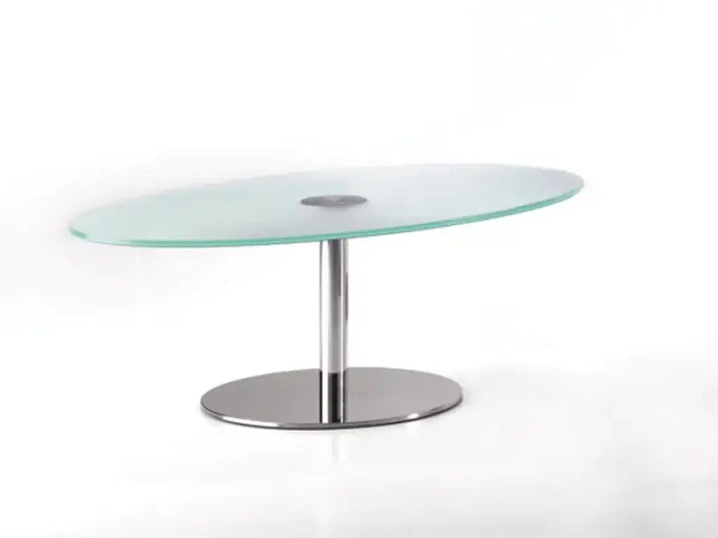 Basic 854 C - Rectangular glass and steel coffee table for living room.Basic - Tables with metal column and round base painted or chrome.Various measures available for the top and various heights available for the column.Available with MDF or temperated glass top.Ideal for: cafes, bars, break areas.Optional: beech or wengè top.
