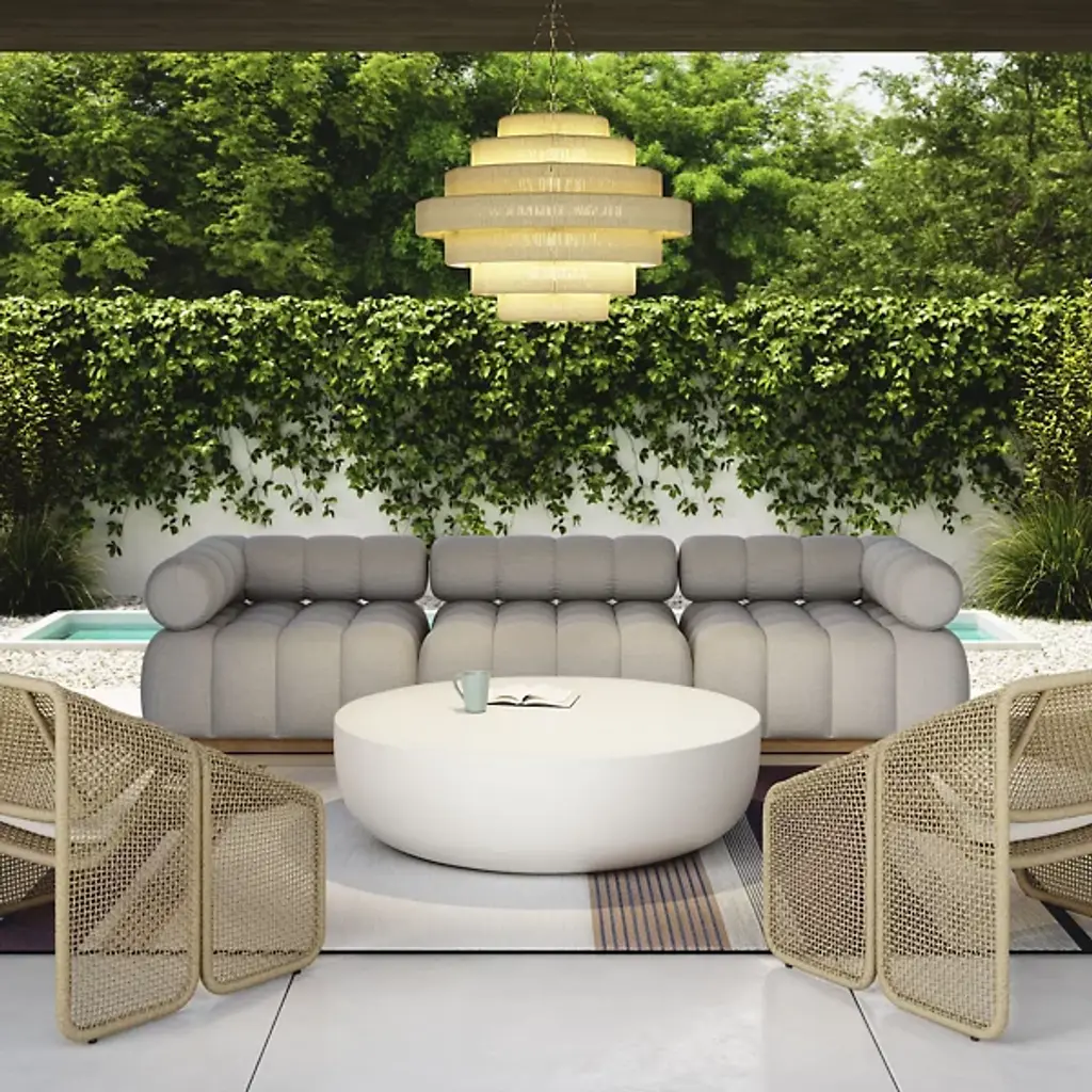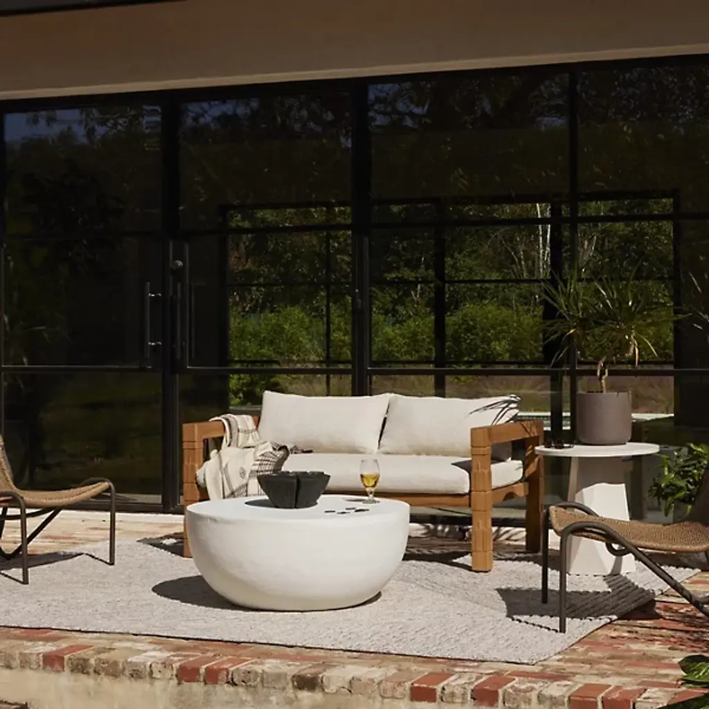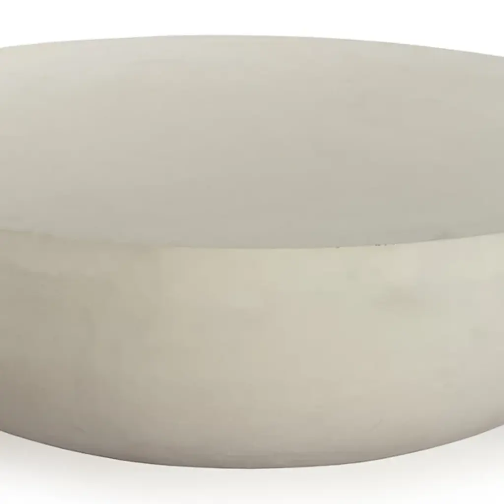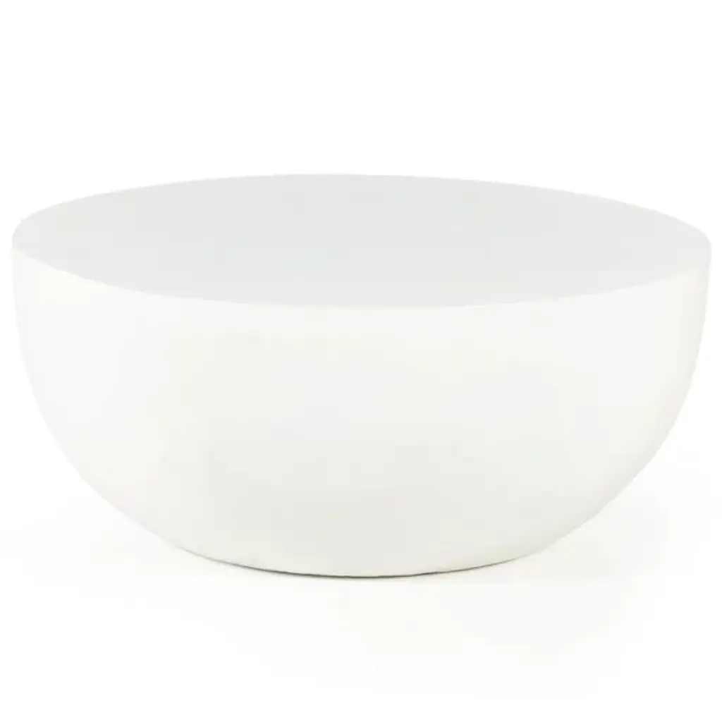 The Basil Round Outdoor Coffee Table from Four Hands adds an inspiring enhancement to indoor and outdoor spaces with its direct sculptural charm. A robust aluminum construction secure in its simplicity, this single-piece fixture features a textured finish that adds depth to its typically smooth surface, enriching the minimalist design with subtle vibrancy. Versatile and functional, the inverted round shape gracefully arcs upward from a smaller base, easily transitioning between indoor and outdoor environments and bringing an air of textured elegance to any setting.