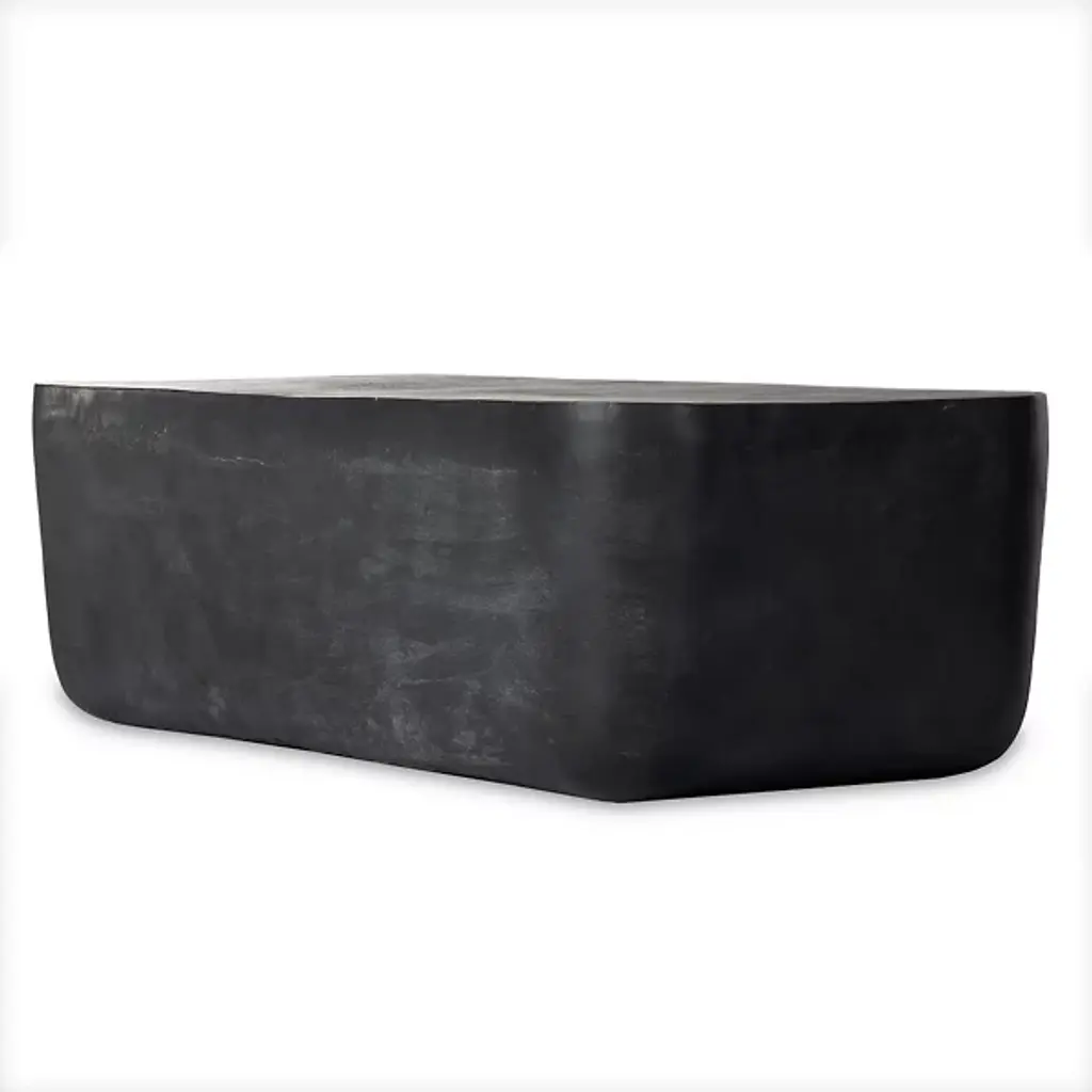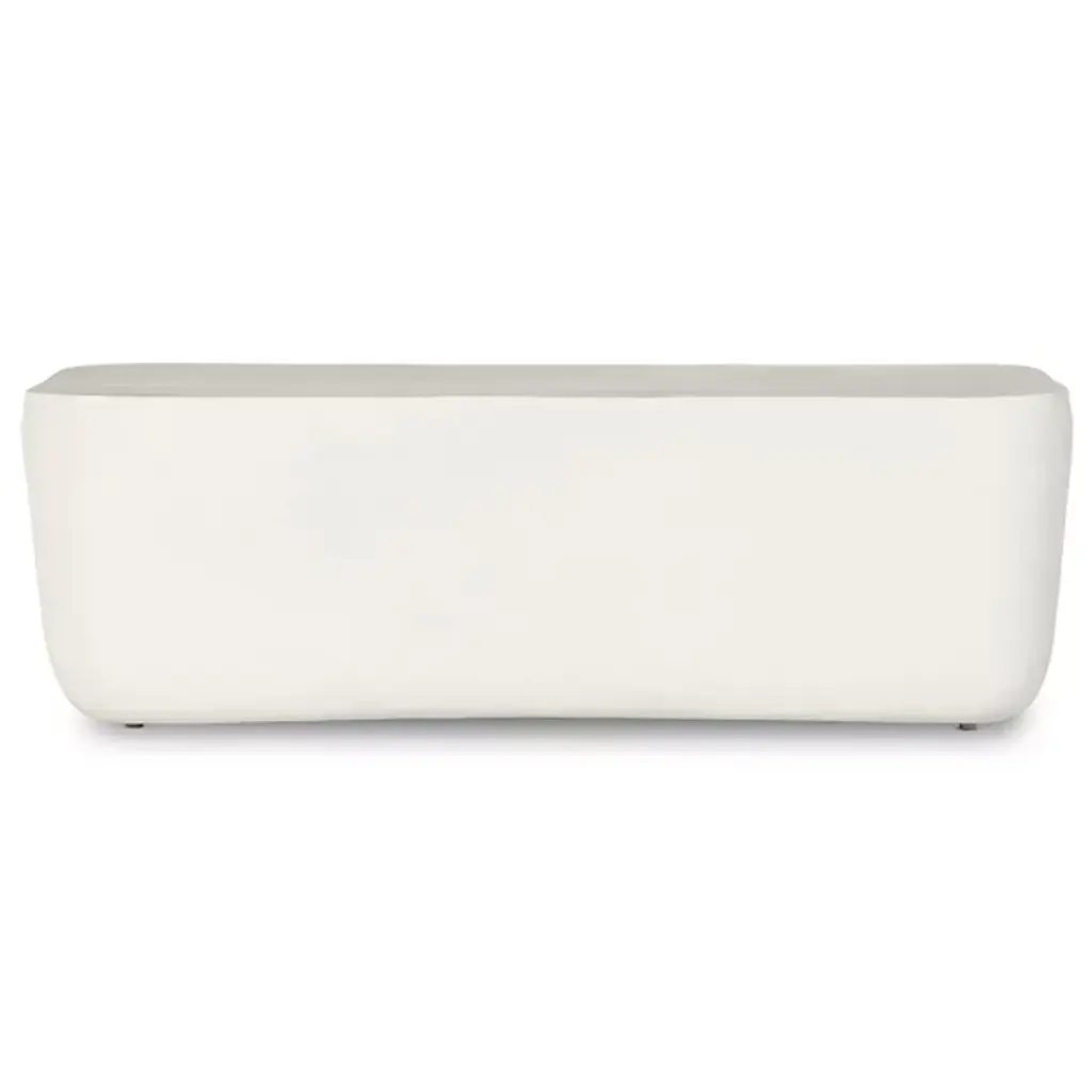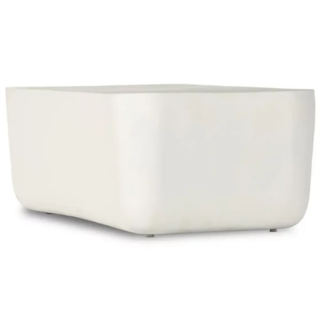 The Basil Rectangular Outdoor Coffee Table from Four Hands enhances your indoor and outdoor living areas with elegant ease. Crafted with a textured finish that highlights the structural depth of aluminum, this table boasts a sculptural and minimalist design, evoking a sense of movement. Its versatility allows for a seamless transition between indoor and outdoor spaces, adding a contemporary touch to any setting. With its sleek rectangular shape elegantly rising from a smaller base, this table brings modern sophistication to any environment, whether for casual outdoor gatherings or stylish indoor entertaining.