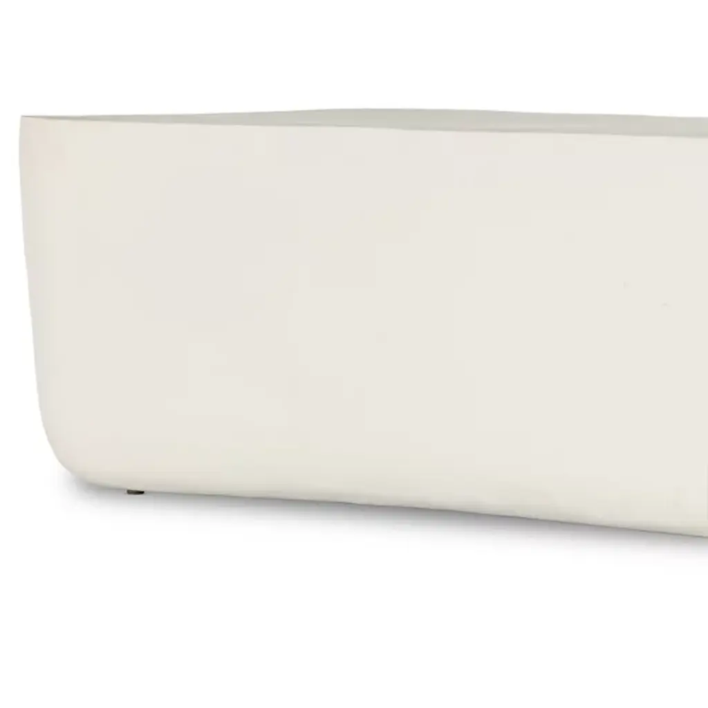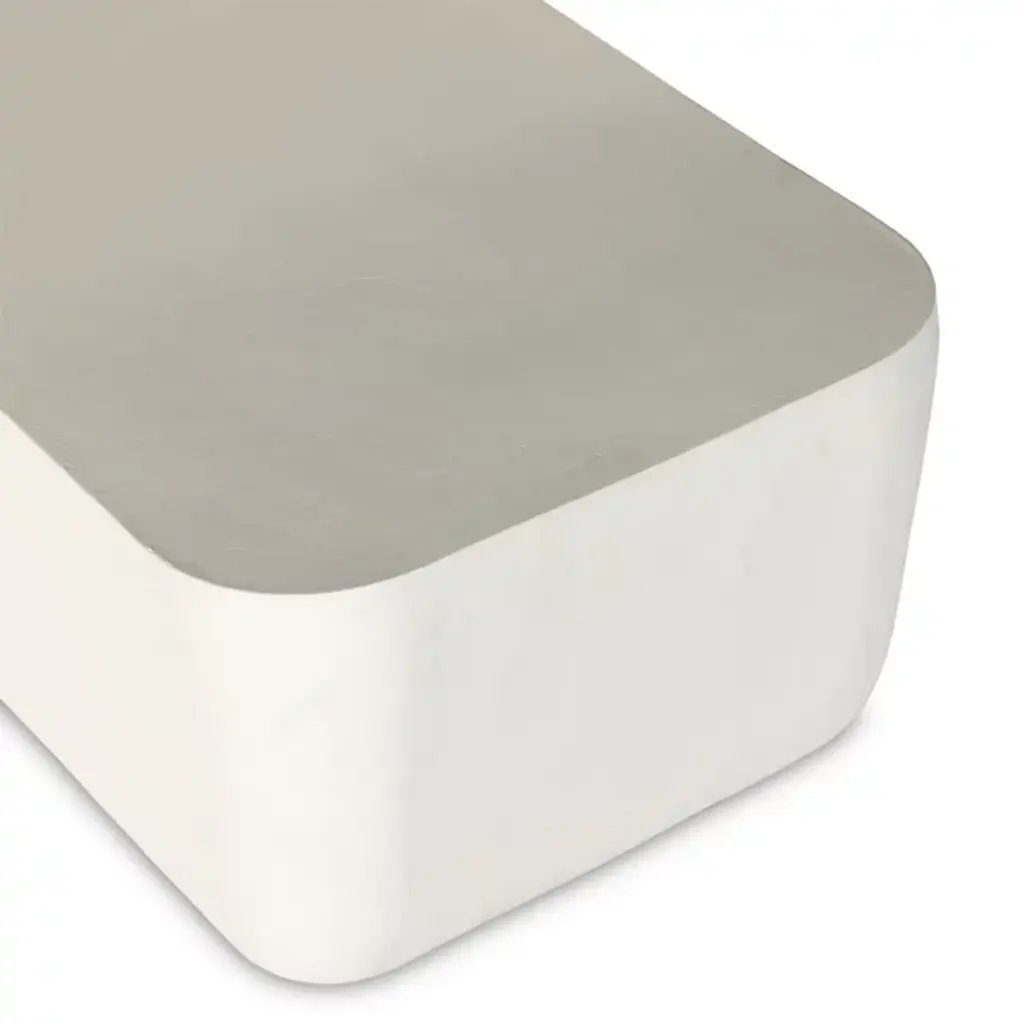 The Basil Rectangular Outdoor Coffee Table from Four Hands enhances your indoor and outdoor living areas with elegant ease. Crafted with a textured finish that highlights the structural depth of aluminum, this table boasts a sculptural and minimalist design, evoking a sense of movement. Its versatility allows for a seamless transition between indoor and outdoor spaces, adding a contemporary touch to any setting. With its sleek rectangular shape elegantly rising from a smaller base, this table brings modern sophistication to any environment, whether for casual outdoor gatherings or stylish indoor entertaining.
