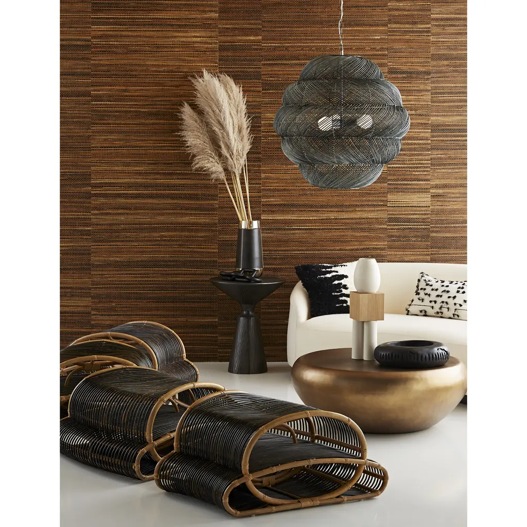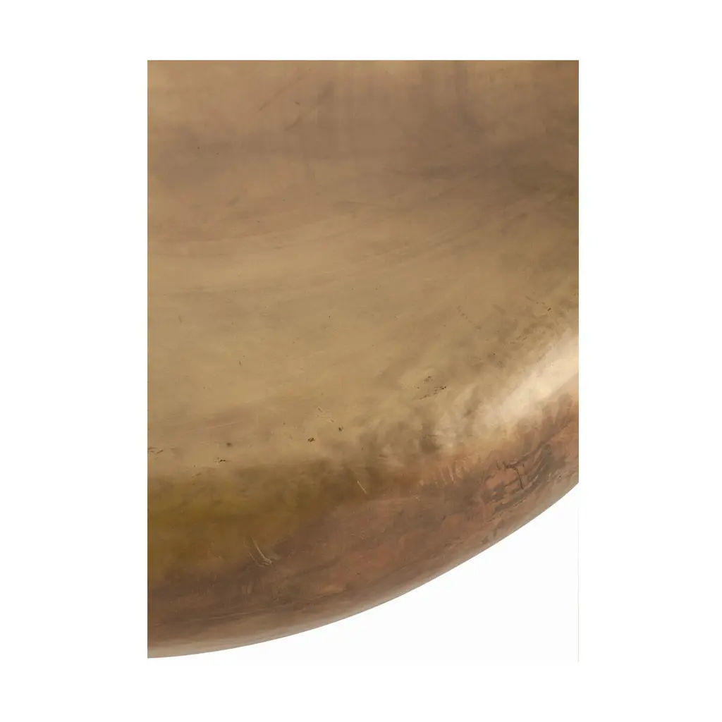 This voluminous drum cocktail table is made of iron then finished in burnt brass a golden finish a bit lighter than antique brass. We love the artisan look and feel. Coordinates with side table #2418.