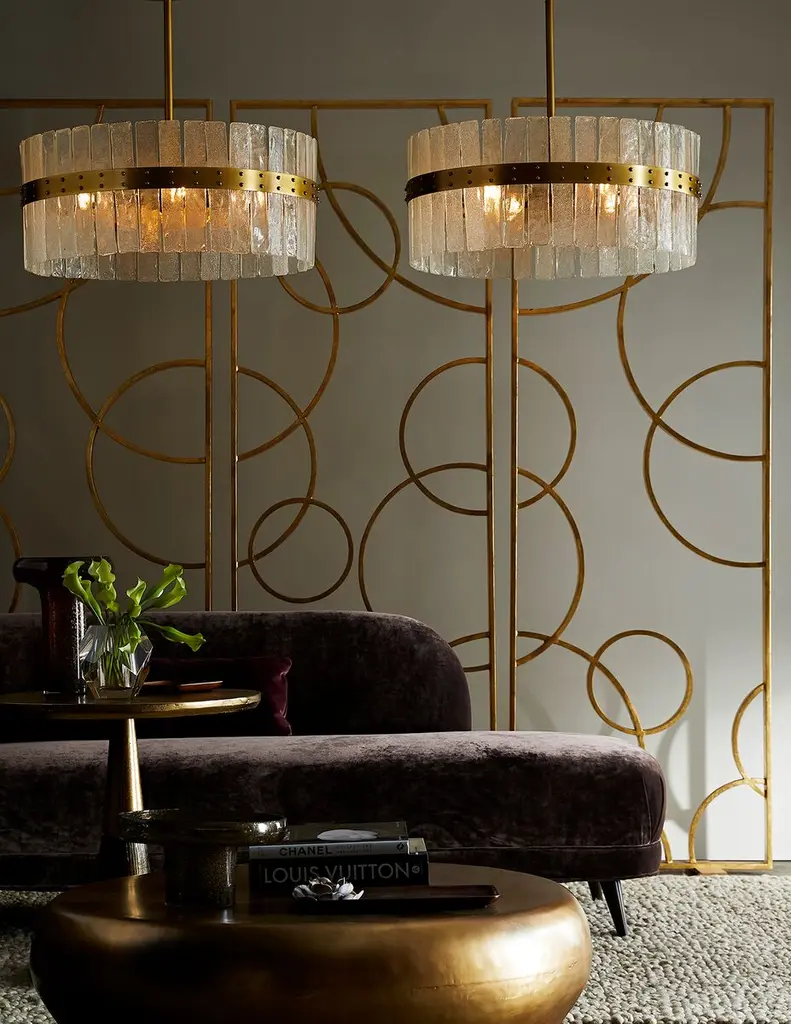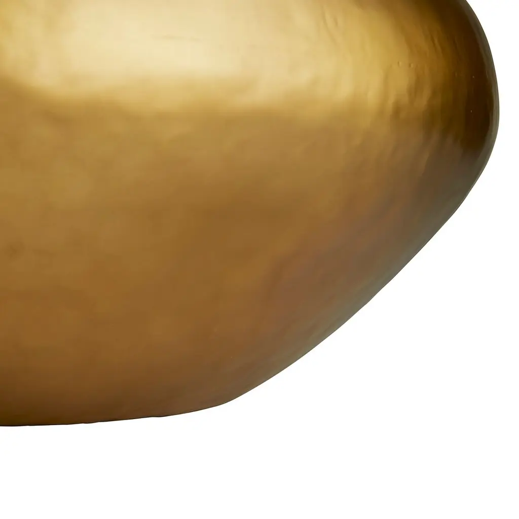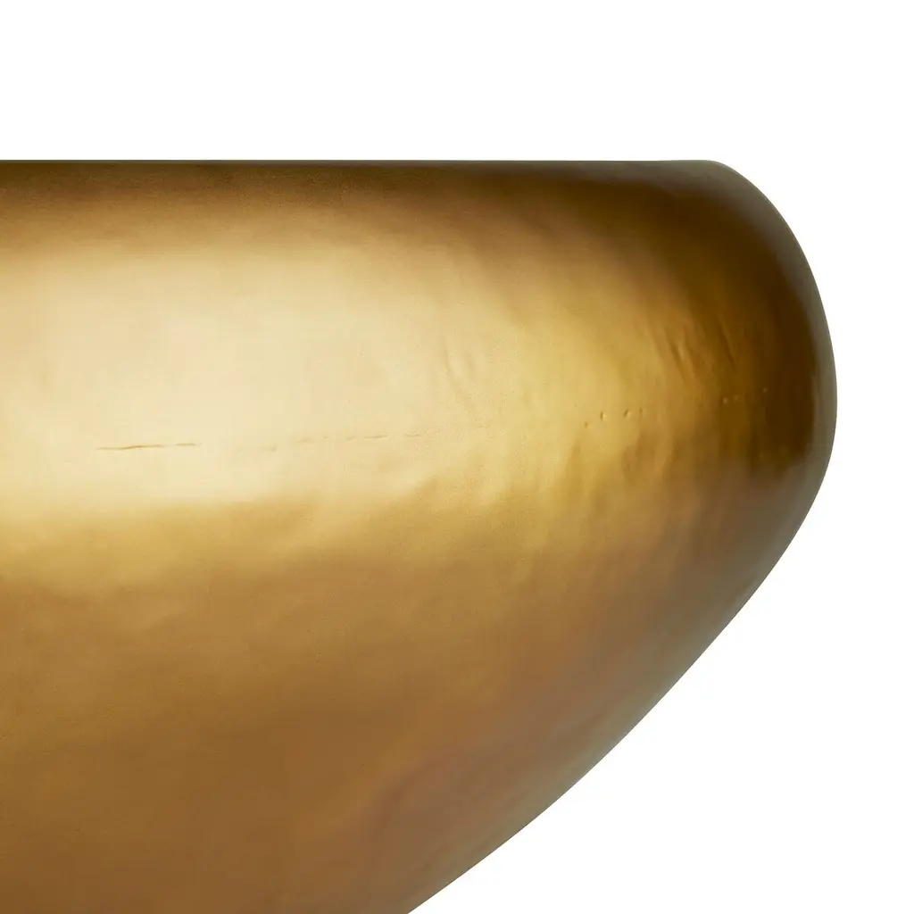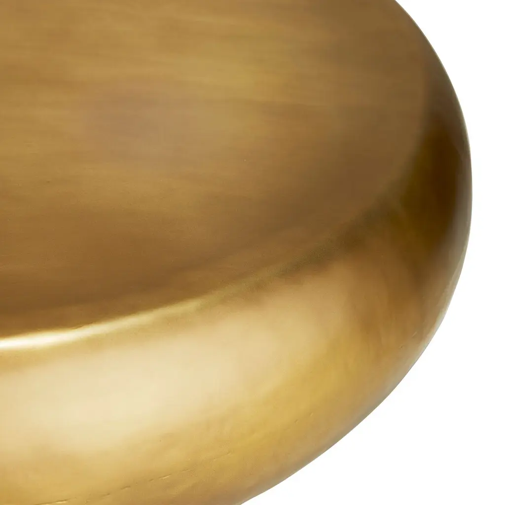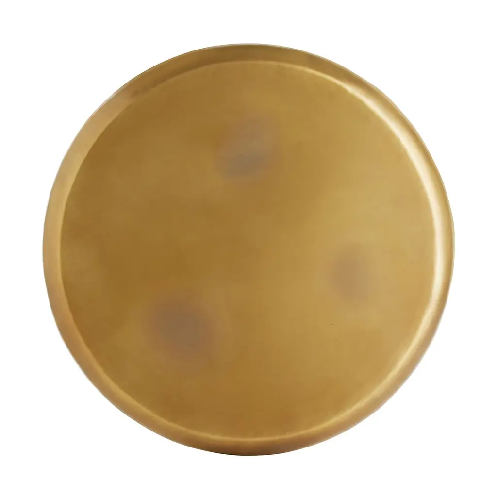 This voluminous drum cocktail table is made of iron then finished in burnt brass a golden finish a bit lighter than antique brass. We love the artisan look and feel.