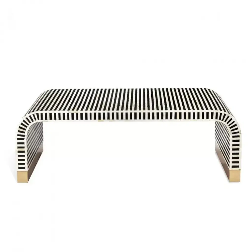Boasting a mesmerizing inlaid pattern of black resin, natural bone and shiny brass, the Beacon Cocktail Table is the definition of fabulous.
