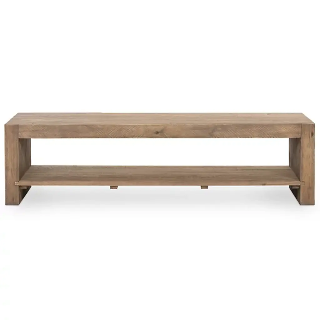 The Beckwourth Coffee Table from Four Hands represents rustic charm using reclaimed pine. It celebrates the natural beauty of wood, preserving each plank's unique graining and character. The table's design incorporates a practical lower shelf, enhancing its storage capabilities without compromising its pastoral appeal. Its sturdy construction ensures it can withstand daily use while maintaining its unique appearance. This coffee table’s honest design and functional form make it an ideal centerpiece for living rooms inspired by farmhouse or industrial aesthetics.