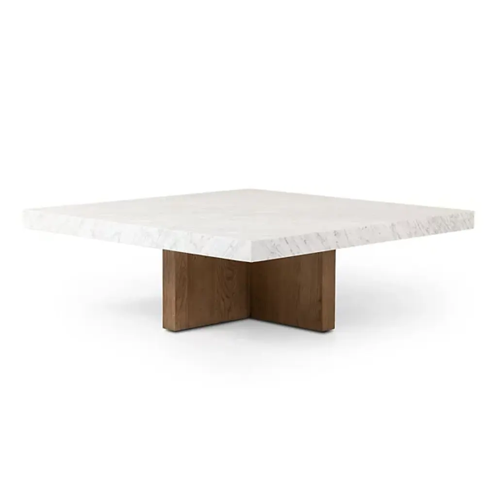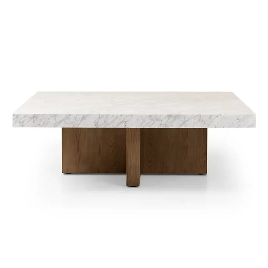 The Bellamy Square Coffee Table from Four Hands unites contemporary aesthetics and meticulous craftsmanship. This exceptional piece showcases a tabletop crafted from luxurious Carrara solid marble. Bellamy’s framework boasts thick oak veneer and poplar plywood, enhancing performance and accentuating its clean profile. The resilient design showcases refined lines, creating a charming square shape that adds character to your living space. Make this coffee table a mainstay of your 21st-century layout.