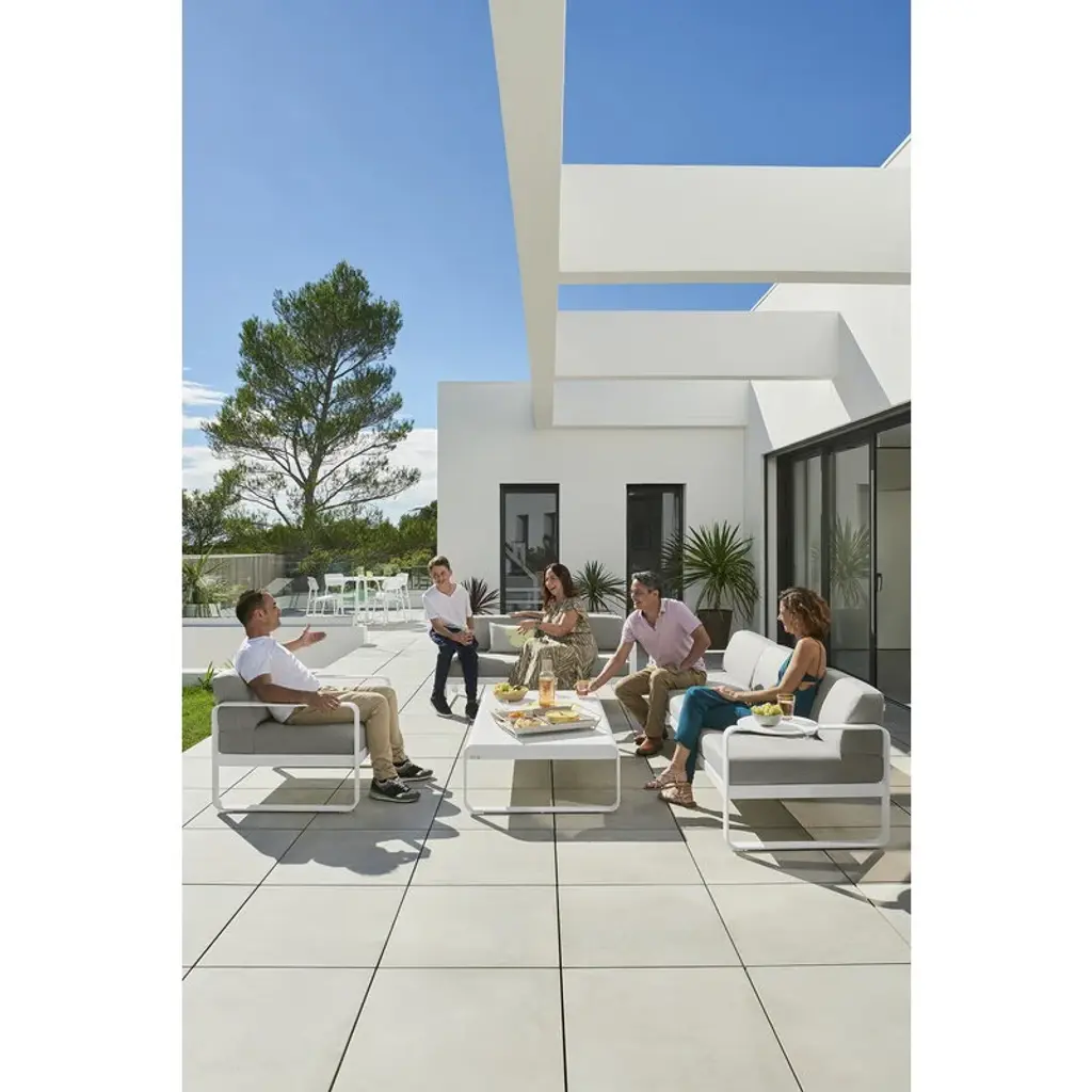 Fermob's Bellevie lounge table is the perfect partner for an outdoor lounge set, making it the ideal choice for those who like to relax with family and friends out on the patio or in the garden. The outdoor coffee table's look is dominated by a geometric, but softly rounded form, which makes it easy to combine with a wide range of sofas and lounge chairs. The low garden table is made of light but durable aluminum, making it very hard-wearing even at the mercy of fickle weather.