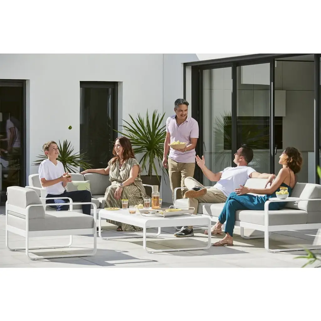 Fermob's Bellevie lounge table is the perfect partner for an outdoor lounge set, making it the ideal choice for those who like to relax with family and friends out on the patio or in the garden. The outdoor coffee table's look is dominated by a geometric, but softly rounded form, which makes it easy to combine with a wide range of sofas and lounge chairs. The low garden table is made of light but durable aluminum, making it very hard-wearing even at the mercy of fickle weather.