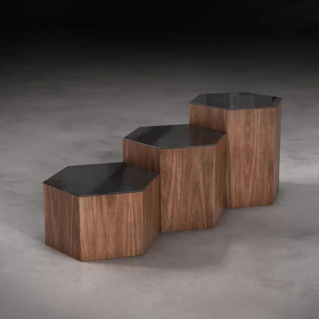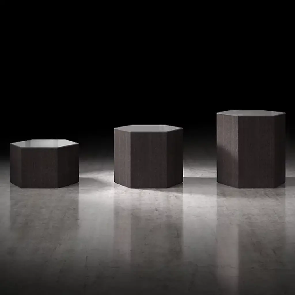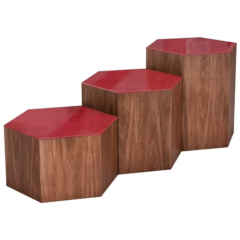 Let your imagination run wild with the Bellezza Occasional Table by Huxe. Great to use as a coffee table, additional seating and more, the Bellezza Occasional Table can be placed in the center of the room or next to a decorative chair. Its painted glass top comes in numerous color options with a variety of natural wood veneers. Combined with all three sizes, this product creates a unique honeycomb appearance.