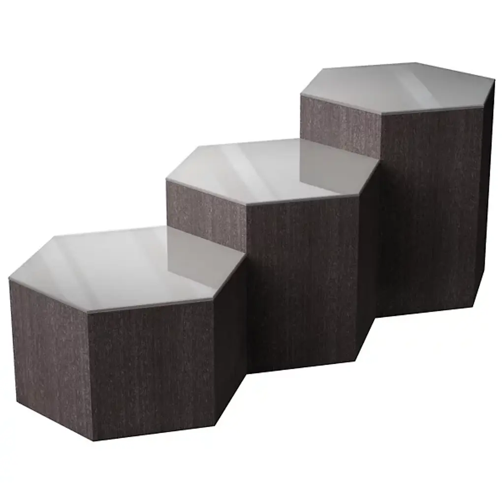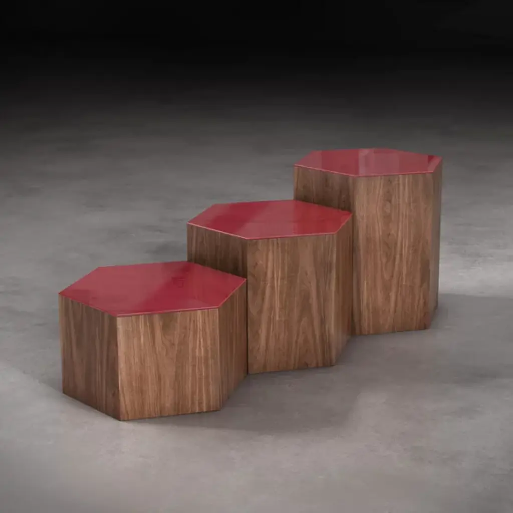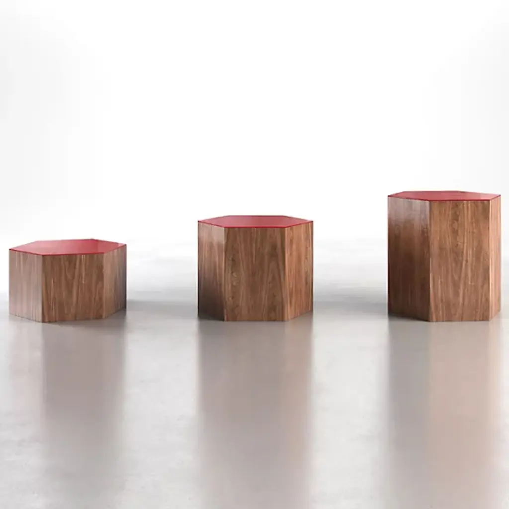Let your imagination run wild with the Bellezza Occasional Table by Huxe. Great to use as a coffee table, additional seating and more, the Bellezza Occasional Table can be placed in the center of the room or next to a decorative chair. Its painted glass top comes in numerous color options with a variety of natural wood veneers. Combined with all three sizes, this product creates a unique honeycomb appearance.