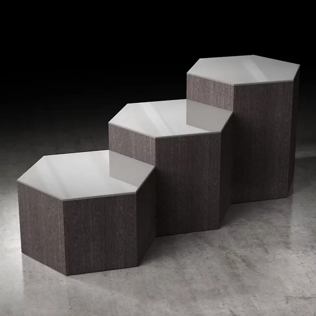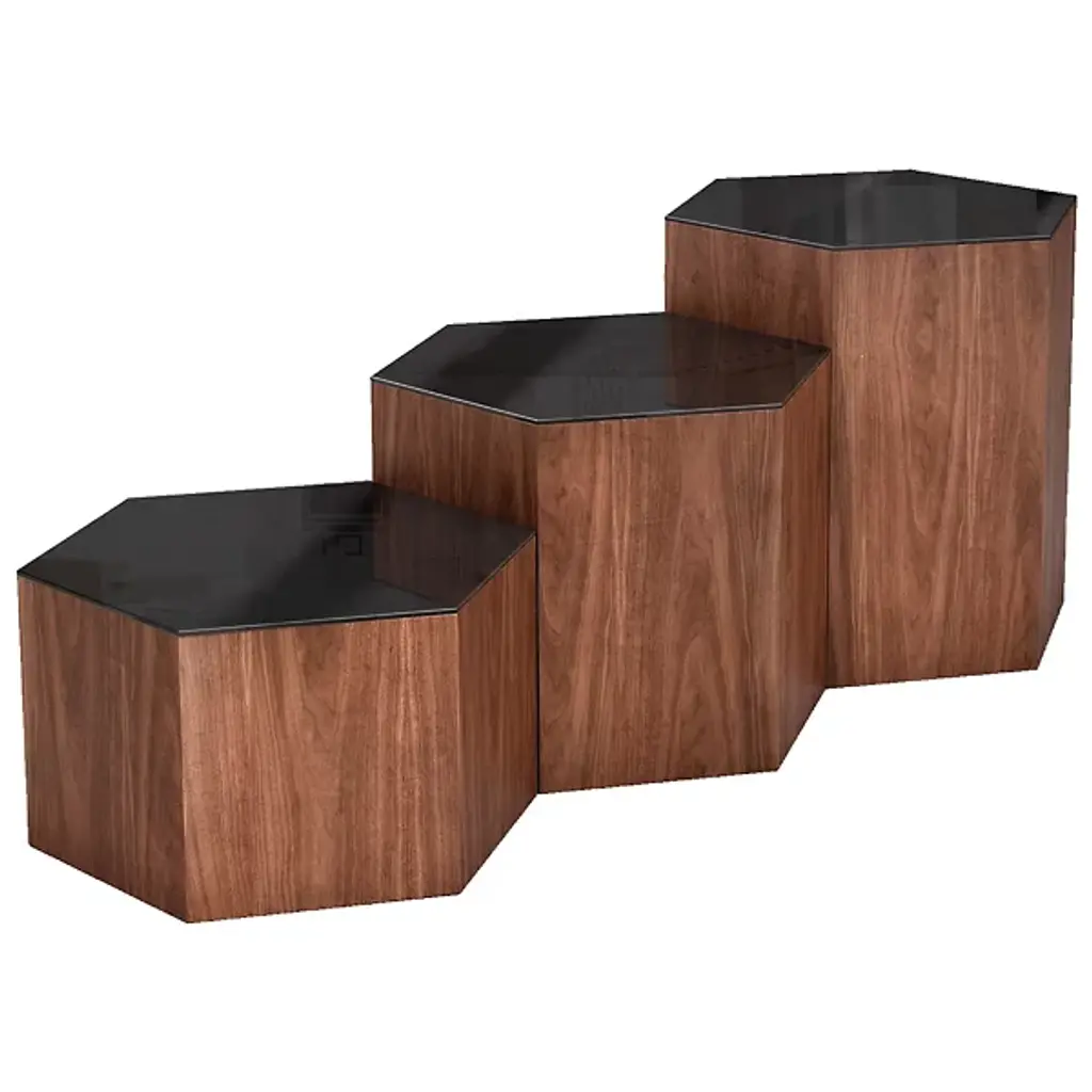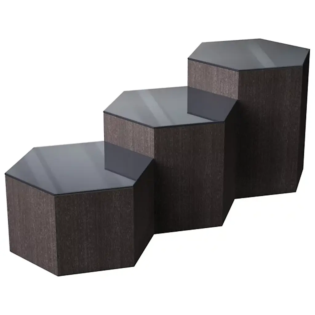 Let your imagination run wild with the Bellezza Occasional Table by Huxe. Great to use as a coffee table, additional seating and more, the Bellezza Occasional Table can be placed in the center of the room or next to a decorative chair. Its painted glass top comes in numerous color options with a variety of natural wood veneers. Combined with all three sizes, this product creates a unique honeycomb appearance.