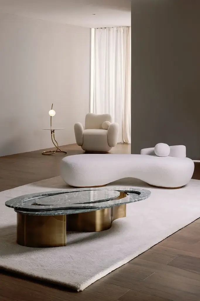 Benagil is a marble coffee table.The Benagil marble coffee table is a masterful expression of craftsmanship, where delicate precision meets exclusive design. Inspired by the organic contours of the Benagil sea caves, its marble top is a testament to the artisanal expertise behind its creation. The interplay of fluid lines and intricate detailing embodies the perfect harmony between design and artistry, transforming the Benagil marble coffee table into a true statement, exclusive piece.
