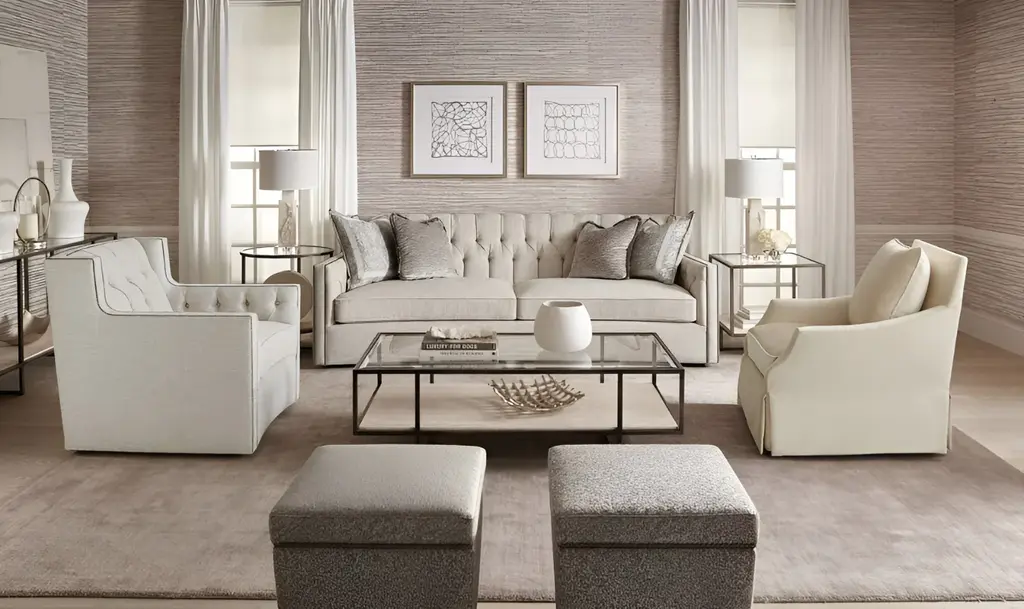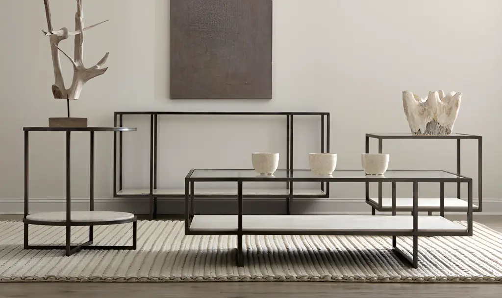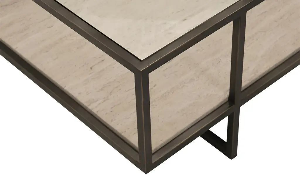 If you are looking for a cocktail table that's perfect for all your entertainment activities, the Bernhardt Harlow cocktail table in rectangle is calling your name. Its rectangular shape makes it easy to fit into different areas of your home, whether it's in the living room, den, or even a large bedroom, offering flexibility in its usage.The cocktail table flaunts an inset tempered glass top with a beveled edge that isn't your average glass. It's tempered for extra durability, and that beveled edge is straight-up classy. The sleek steel with a bronze finish gives off those industrial vibes that will make your space glitter. Did you notice the white travertine stone shelf? It's a slice of fancy that boosts the cocktail's look. With adjustable glides, you don't have to think about the tables messing up your chill vibe by wobbling. These glides got your back. This cocktail table has some supreme elegance that can level up the space.
