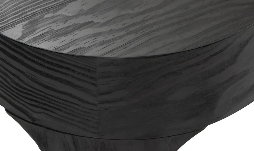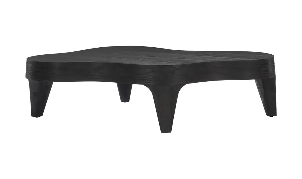 Discover the artful allure of the Katana Cocktail Table in Black a perfect blend of modern aesthetics and functional design. Crafted from solid pine and adorned with flat-cut pine veneers, this table exudes sophistication with its low profile, elegant tapered legs, and striking organic shape. The captivating blackened pine finish not only adds depth but also elevates the visual interest of this semi-rectangular freeform cocktail table. Its unique design strikes a harmonious balance between modern art and practical functionality, providing a stylish focal point for your living space. Constructed with precision and attention to detail, the Katana Cocktail Table features adjustable glides for added convenience. Embrace the beauty of freeform style with this exceptional piece that transcends traditional boundaries. Redefine your living room with the Katana Cocktail Table statement of contemporary elegance and timeless design.