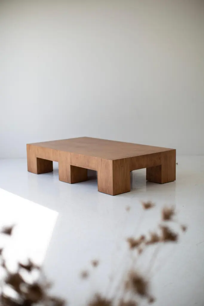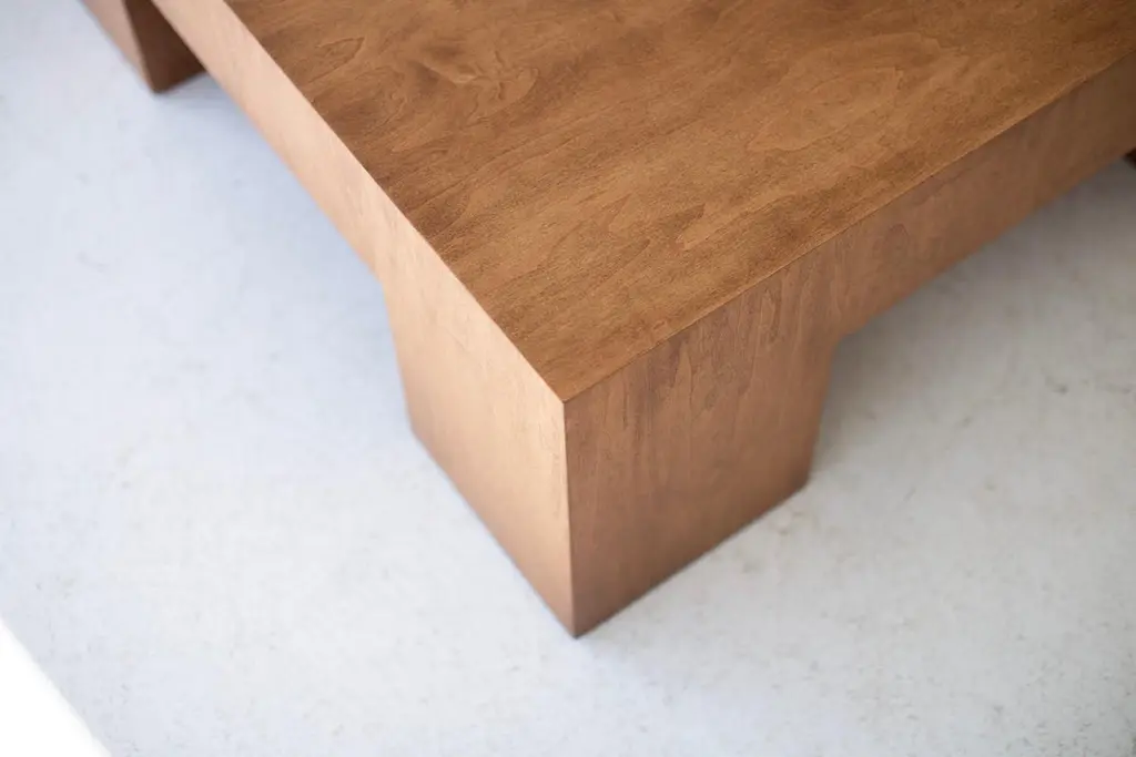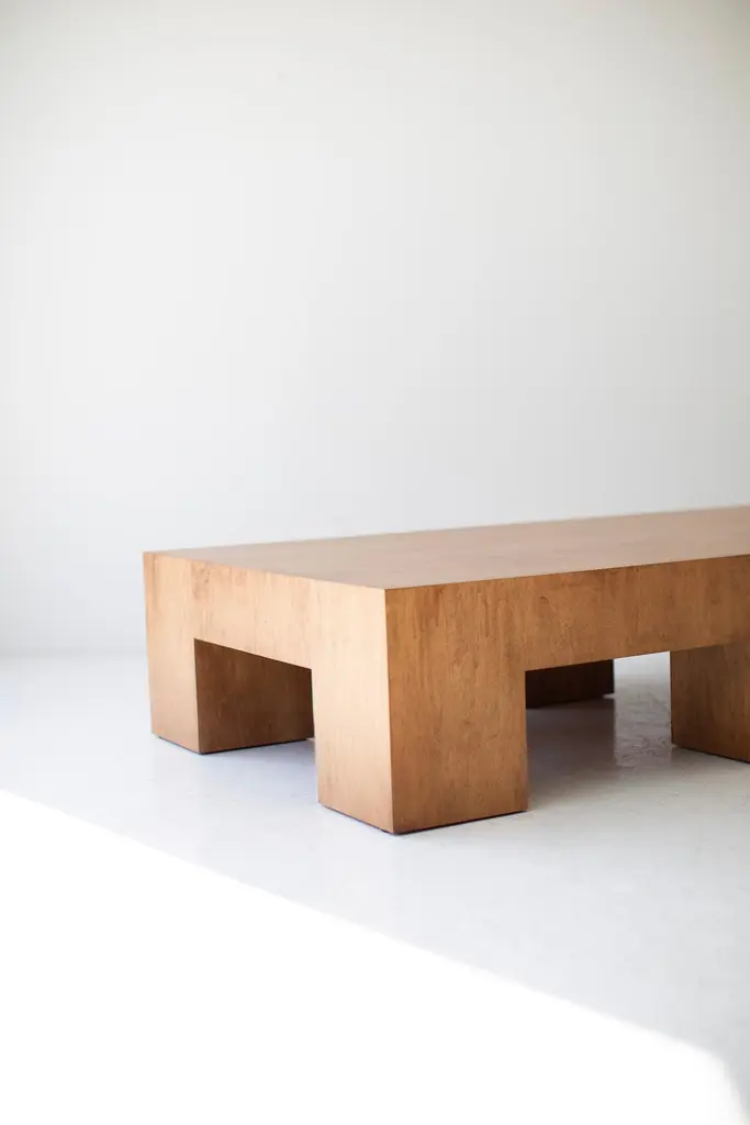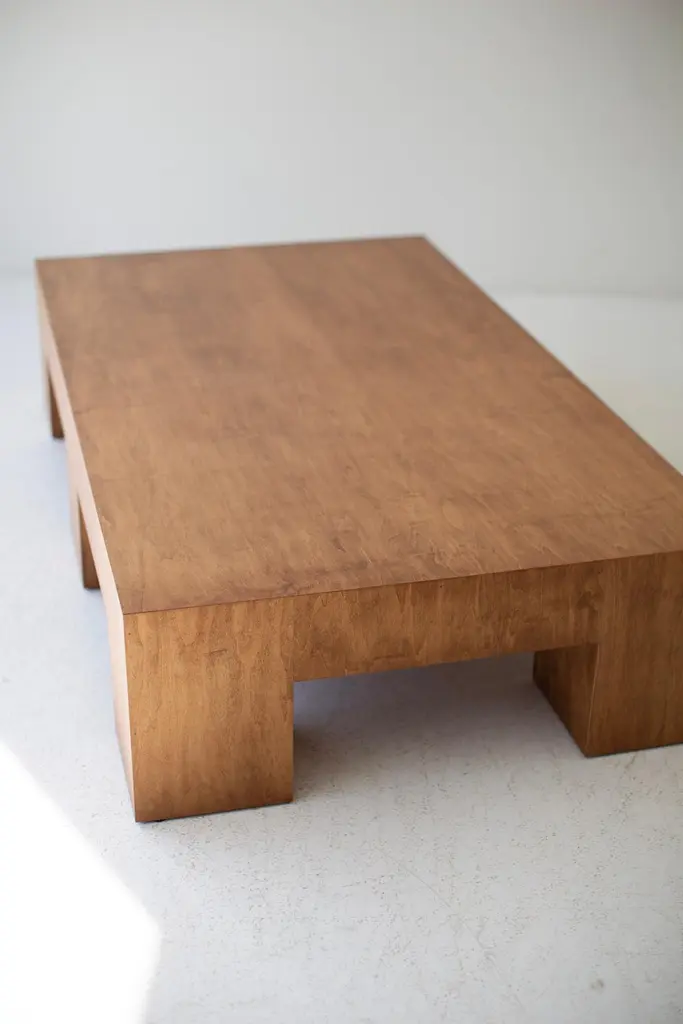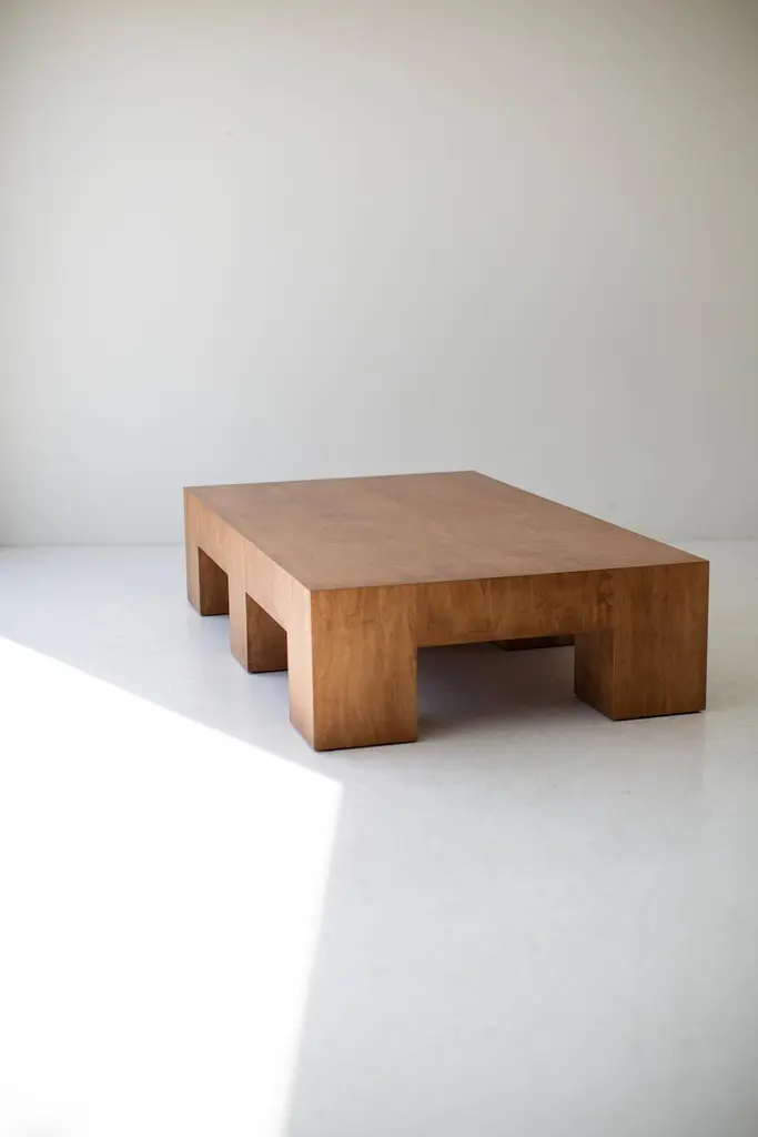1.Bertu Coffee Table, Large Modern Coffee Table, Maple Veneer, MondoThis Large Modern Coffee Table - The Mondo is made in the heart of Ohio with locally sourced wood. Each table is hand-made with mitered corners from white oak or maple veneer and finished with a beautiful matte commercial-grade finish. These are made to order so you can customize finish color, size, etc. This table is cool and modern and we absolutely love it!SpecsPeriod/Model: New; ModernSpecs: White Oak OR Maple Plywood Veneer, Commercial grade finish "caramel" finishCustomizable: Yes! It's what we do :)dimensionsH: 15"W: 40"L: 70"SKU: Bertu Coffee Table, Large Modern Coffee Table, Maple Veneer, Mondo
