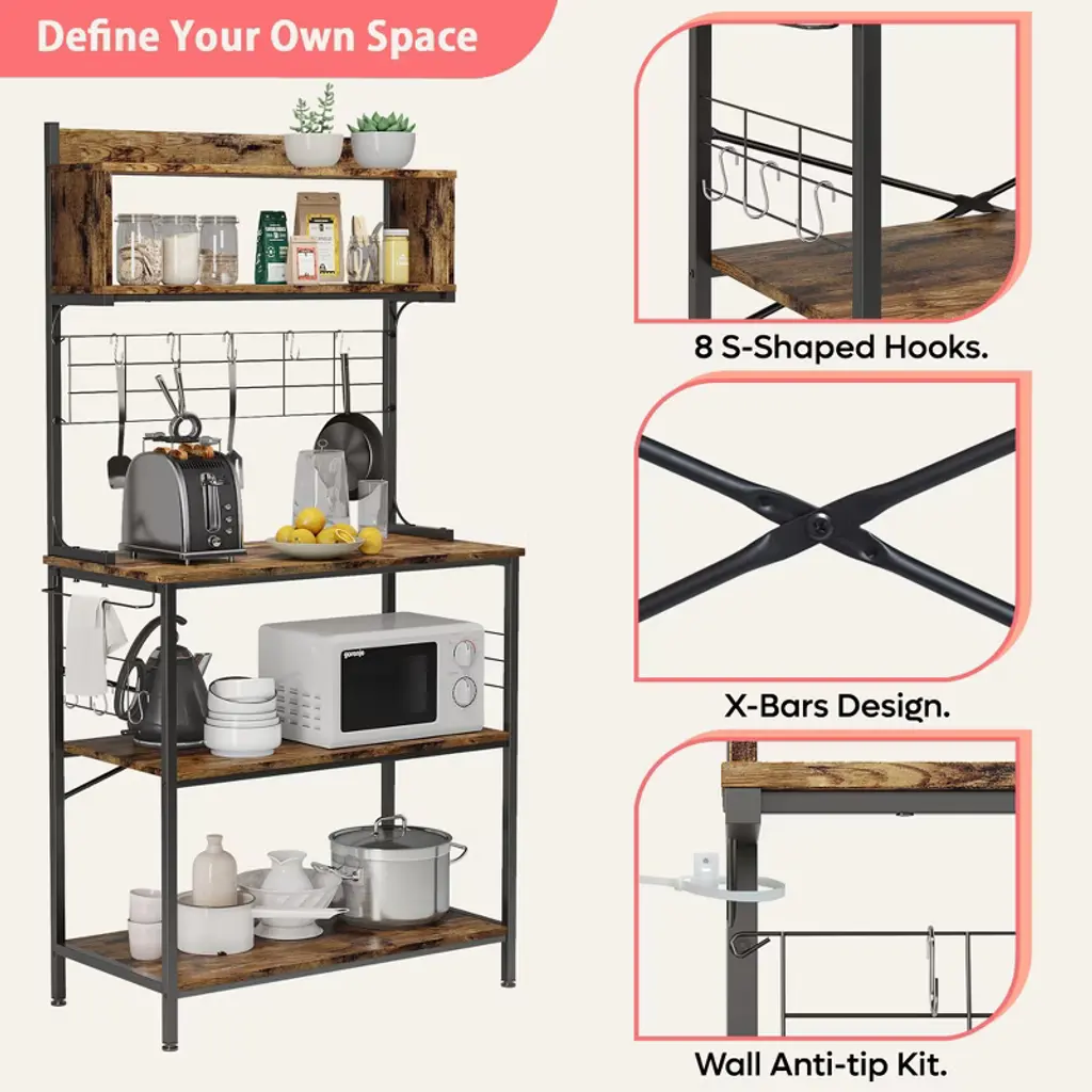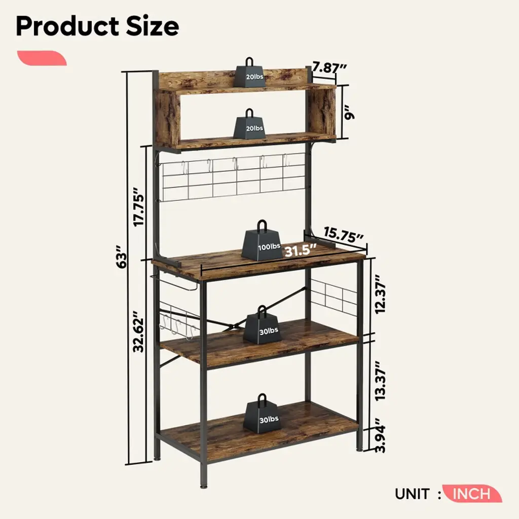 Recommending this Kitchen Baker's Rack for you. This rack is made of CARB P2 Wood + Steel Frame, which made it more durable. Exquisitely carved designs decorate your kitchen. With room for everything from your microwave, oven, and pans, to small items like spoons, oven gloves, cups, etc, it makes it easy to have everything in its proper place. Provide you a clean tidy kitchen and bring you good mood. What are you waiting for? It will not let you down.