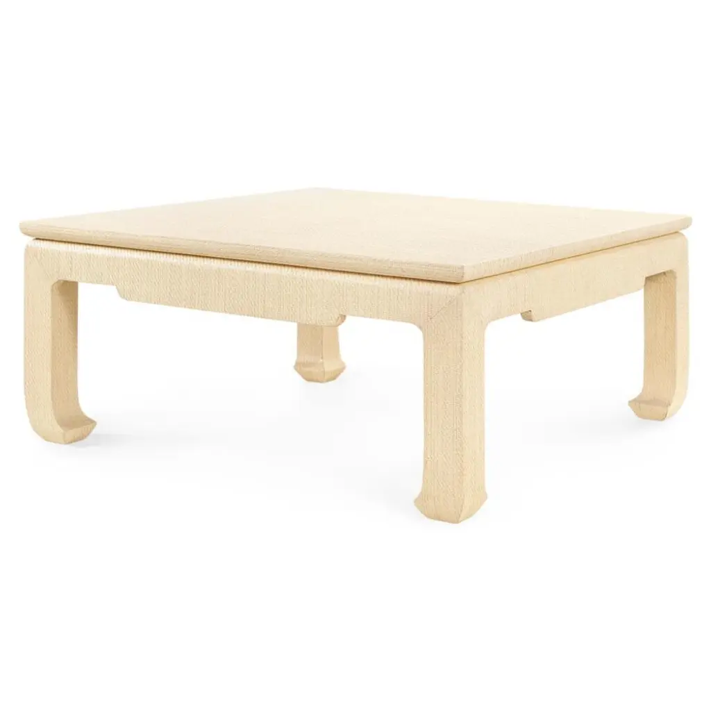 Bethany Coastal Natural Twill Fabric Chow Feet Square Coffee Table