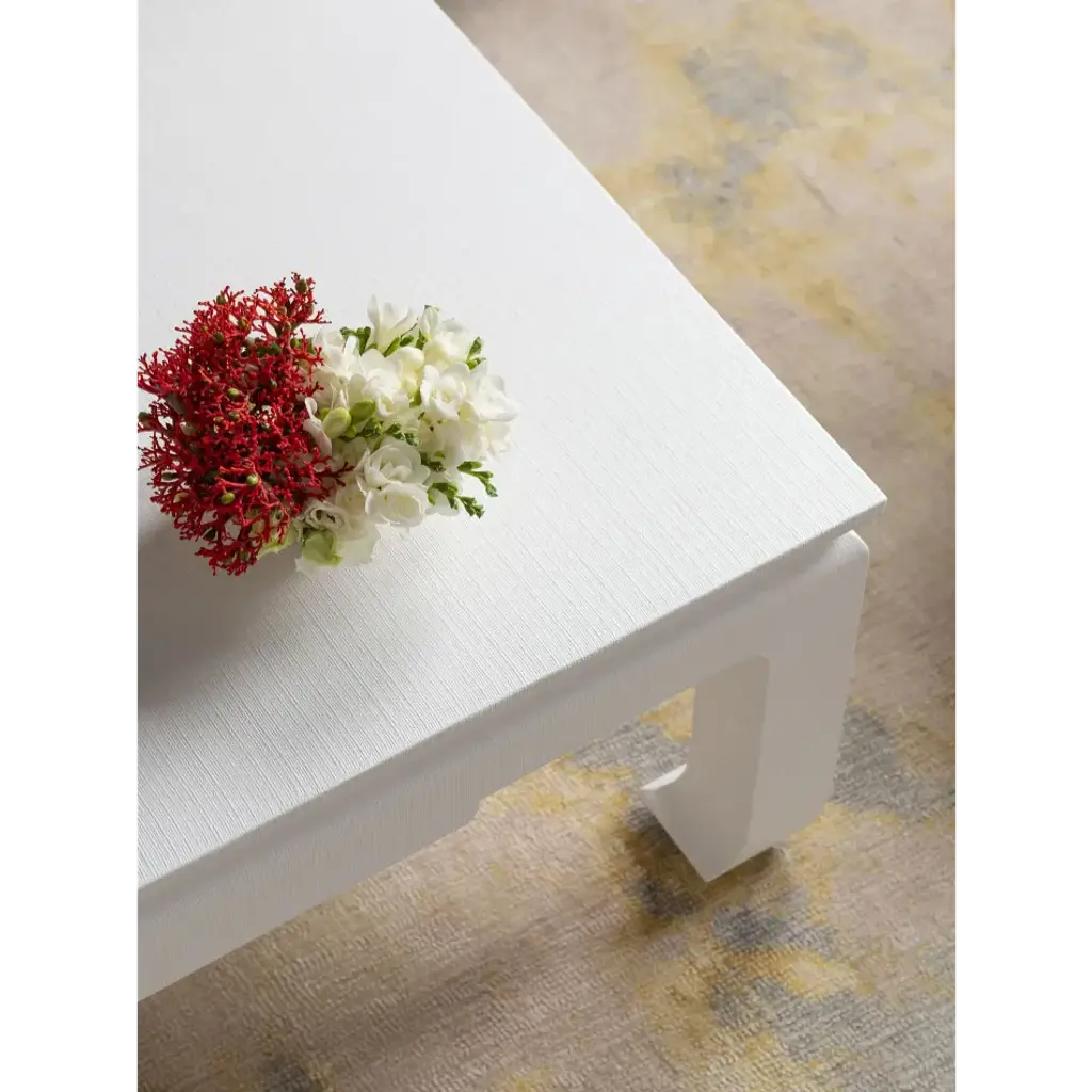 With new proportions and thicker chow feet legs, the Bethany Rectangular Coffee Table from Villa & House is a substantial piece. Finished in a textural, lacquered heavy linen, the Bethany has a chunky appearance that almost reads like plaster. More traditional than its square counterpart, the Bethany Large Rectangular Coffee Table is 54 by 30 inches and is the most sizable coffee table in Villa & House’s assortment. The Bethany is equally welcomed as a neutral moment in a beachy, coastal room like a Long Beach dining room or as a gathering place in a brightly colored sunroom. What We Love About the Bethany Collection: A pared-down version of modern Asian flair, the Bethany Collection is significant in a room and packs a major punch.