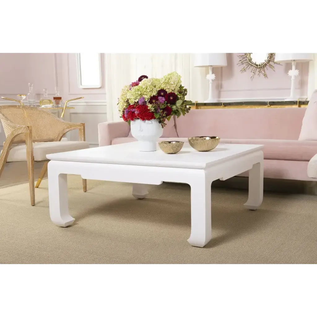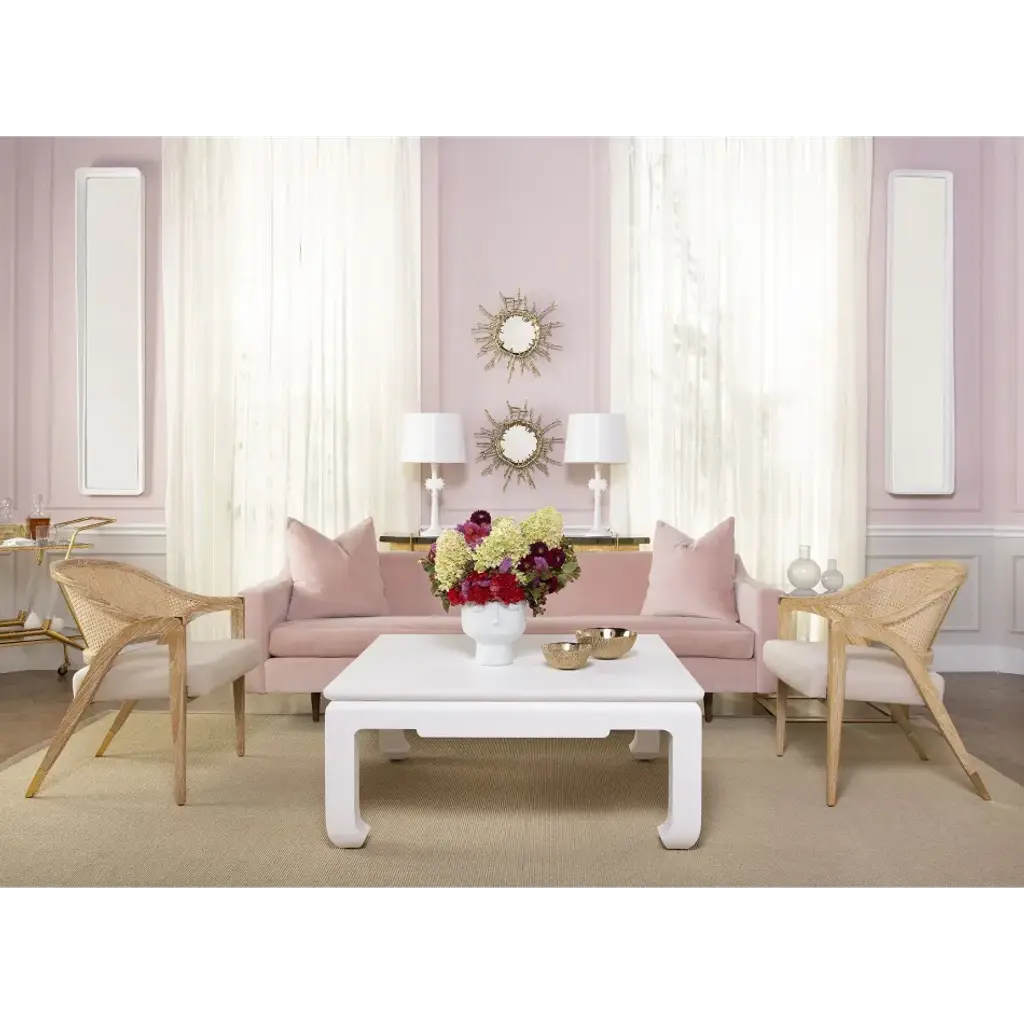 With new proportions and thicker chow feet legs, the Bethany Large Square Coffee Table from Villa & House is a substantial piece. Finished in a textural, lacquered heavy linen, the Bethany has a chunky appearance that almost reads like plaster. A 42 by 42-inch square, this table is best used with a sectional or corner sofa, as its equal sides and 90-degree angles tuck into tight spaces better than a rectangle. The Bethany Large Square Coffee Table—which comes in blue, white, and natural—is equally welcomed as a neutral moment in a beachy, coastal room like a pool house or as the centerpiece of a casual, brightly colored sunroom. What We Love About the Bethany Collection: A pared-down version of modern Asian flair, the Bethany Collection is significant in a room and packs a major punch.