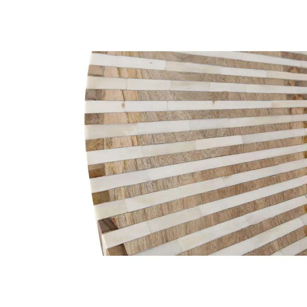 This drum coffee table is as much functional furniture as it is a modern piece of art and conversation starter. Both the sides and round top feature mango wood with all the beauty of natural grain variation – inlaid with white to bring out this stunning striped pattern. Though it's a heavy coffee table, there are casters cleverly hidden underneath so you can easily roll and reposition as needed. Arrives fully assembled.