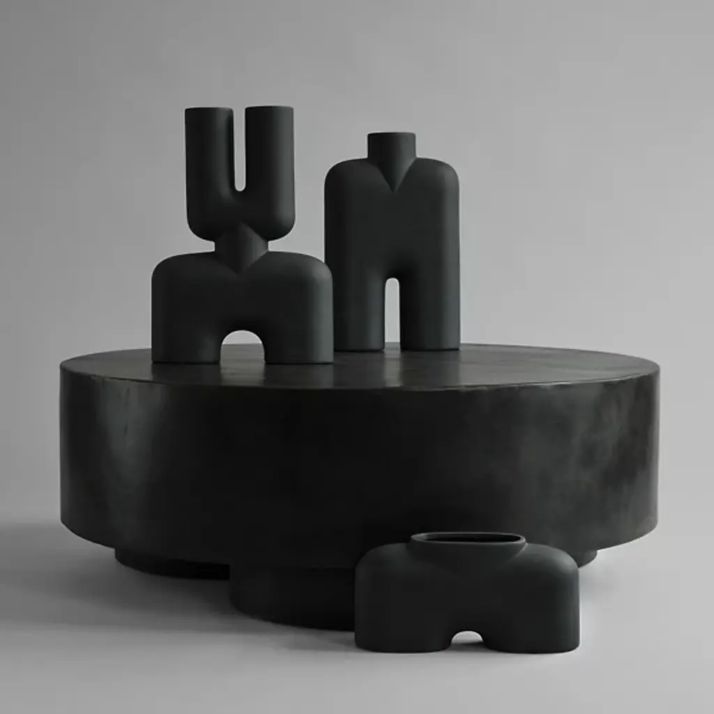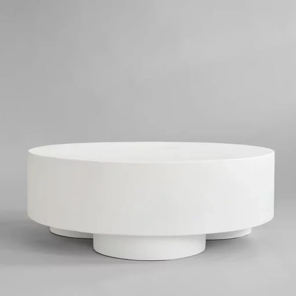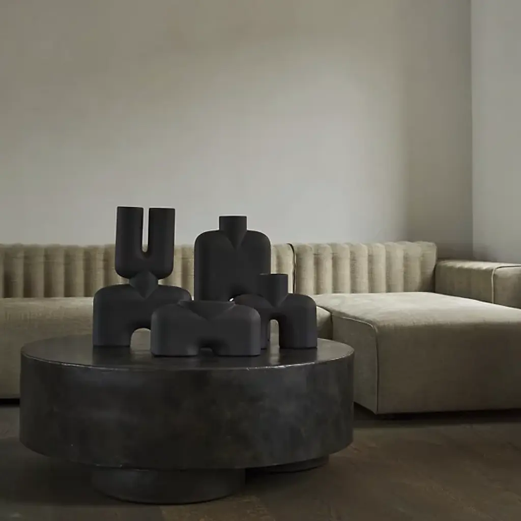 The Big Foot Coffee Table from 101 Copenhagen initially appears heavy and dense, but upon closer inspection, its fiber concrete construction is surprisingly lightweight and easy to move. With design elements inspired by brutalist architecture and contemporary sculpture, this piece features distinctive cylinder-shaped legs and textured, painted surfaces. These unique details give the Big Foot Coffee Table a standout presence, which makes it a striking addition to any modern space.