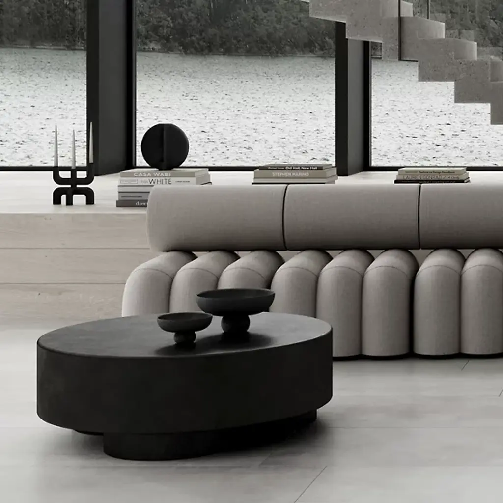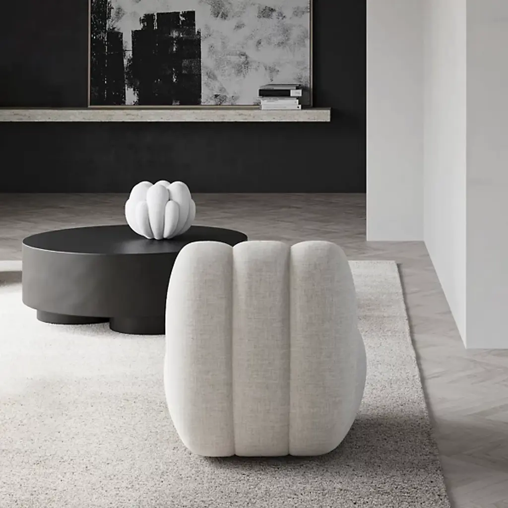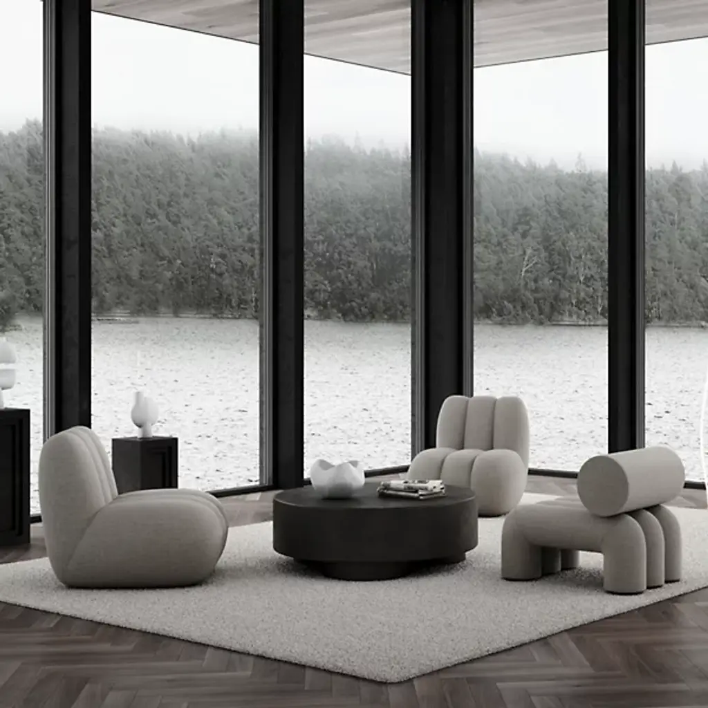 The Big Foot Coffee Table from 101 Copenhagen initially appears heavy and dense, but upon closer inspection, its fiber concrete construction is surprisingly lightweight and easy to move. With design elements inspired by brutalist architecture and contemporary sculpture, this piece features distinctive cylinder-shaped legs and textured, painted surfaces. These unique details give the Big Foot Coffee Table a standout presence, which makes it a striking addition to any modern space.