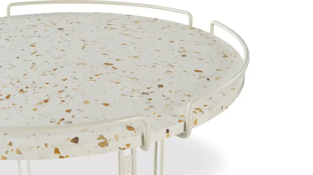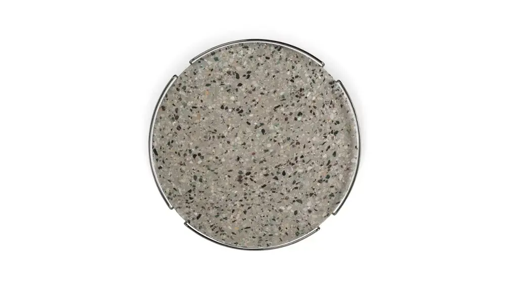 This collection features an elegant steel wire structure with a chrome-plated, black chrome-plated or matte gold finish. The tray is available in marble or antique bubble glass with a transparent or colored finish, a material resembling simmering waters.