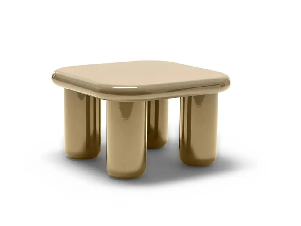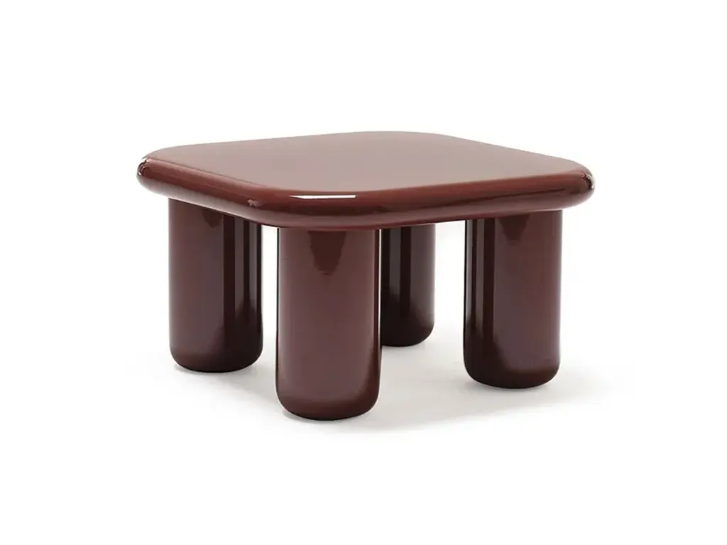 Bilbao is a is a coffee table with a veneered wood top and turned MDF legs. It is available in a matte or glossy lacquer finish (brushed top) in all RAL colors from the sample range.