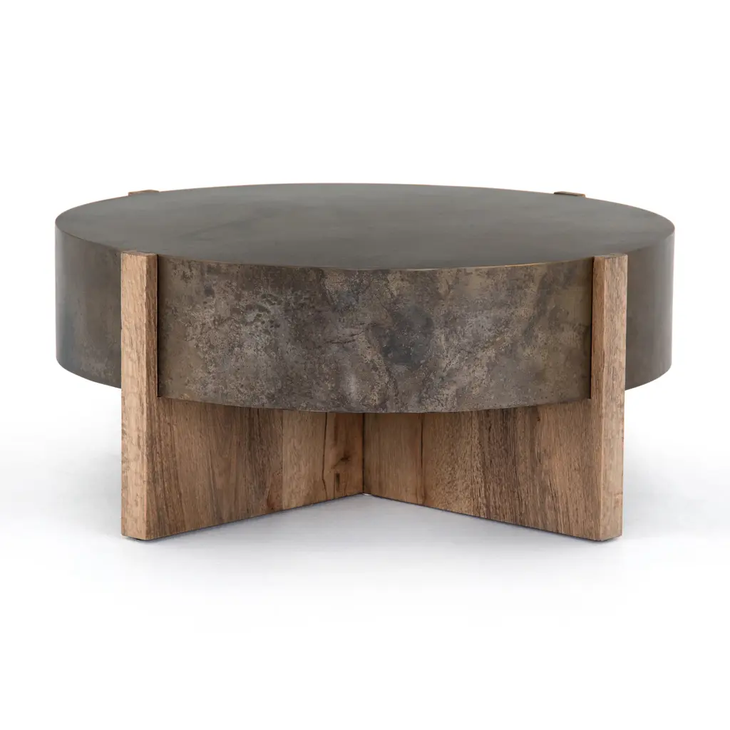 Make a lasting impression with the Bingham Coffee Table from Four Hands. Crafted from distressed iron and character-rich oak wood, this organic statement piece features a rustic cradle base and a drum-style surface, creating a luxurious and unexpected addition to any living space. With its beautiful characteristics and markings, you won't find a more sophisticated and tasteful centerpiece. Highlights