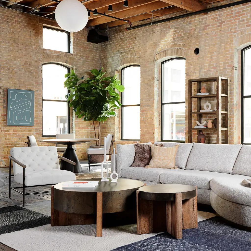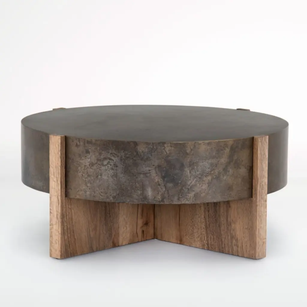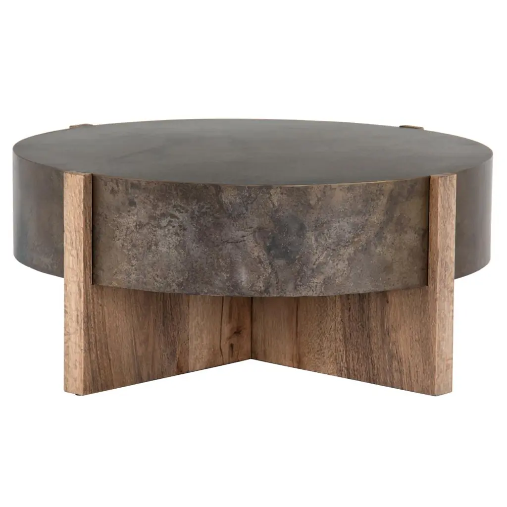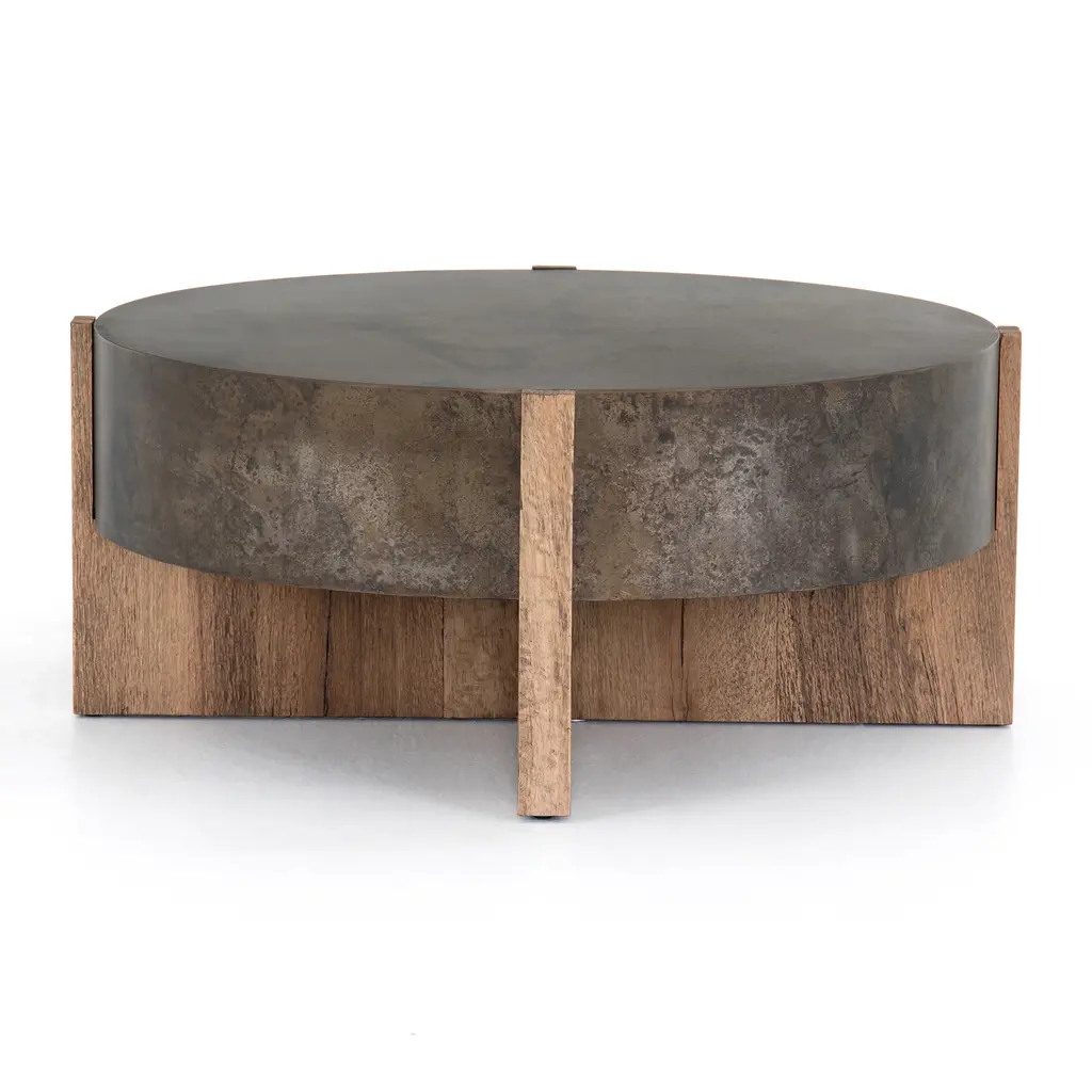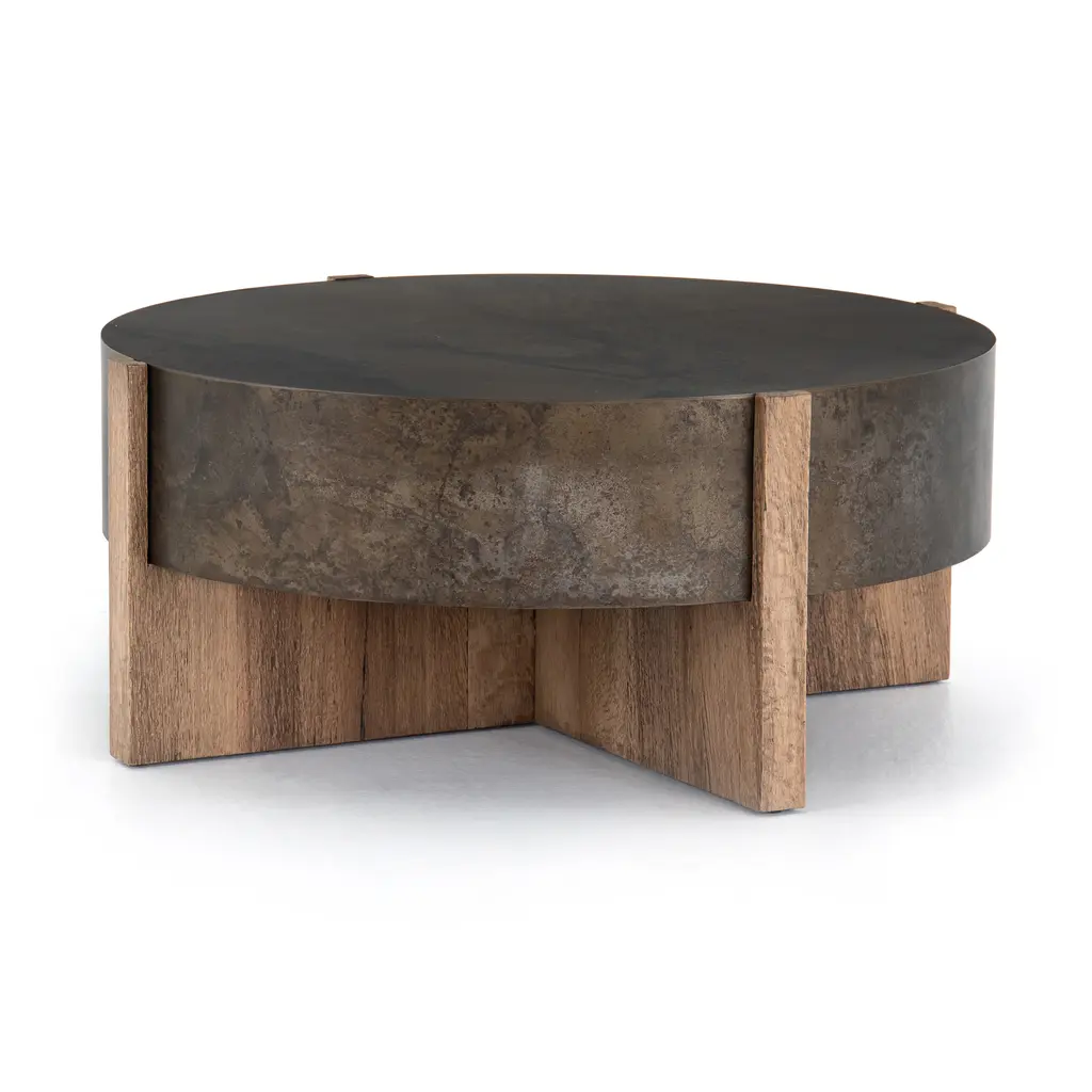 Make a lasting impression with the Bingham Coffee Table from Four Hands. Crafted from distressed iron and character-rich oak wood, this organic statement piece features a rustic cradle base and a drum-style surface, creating a luxurious and unexpected addition to any living space. With its beautiful characteristics and markings, you won't find a more sophisticated and tasteful centerpiece. Highlights