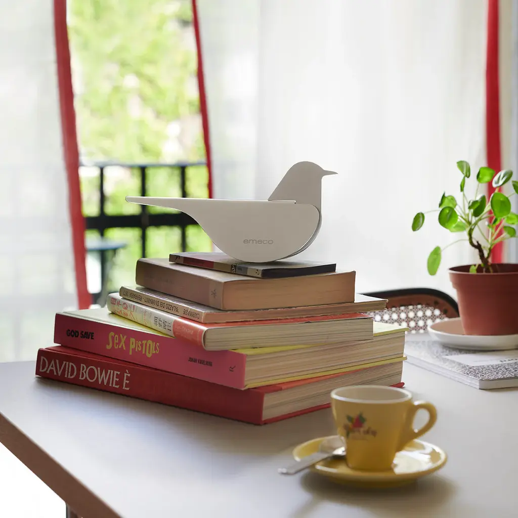 Birds by Yun Li, 2023 Designed by Yun Li, the Birds are made from sheet aluminum in an economic but precise process that expresses the formal quality of the birds with a minimum of elements. The family includes a sparrow, a blackbird and a pigeon, each with its own distinct character. The birds' simple, graceful silhouettes are a natural addition to any setting - on a desk, a shelf, a coffee table or a window ledge. When placed outdoors, the breeze will add a delicate rocking movement to the birds.