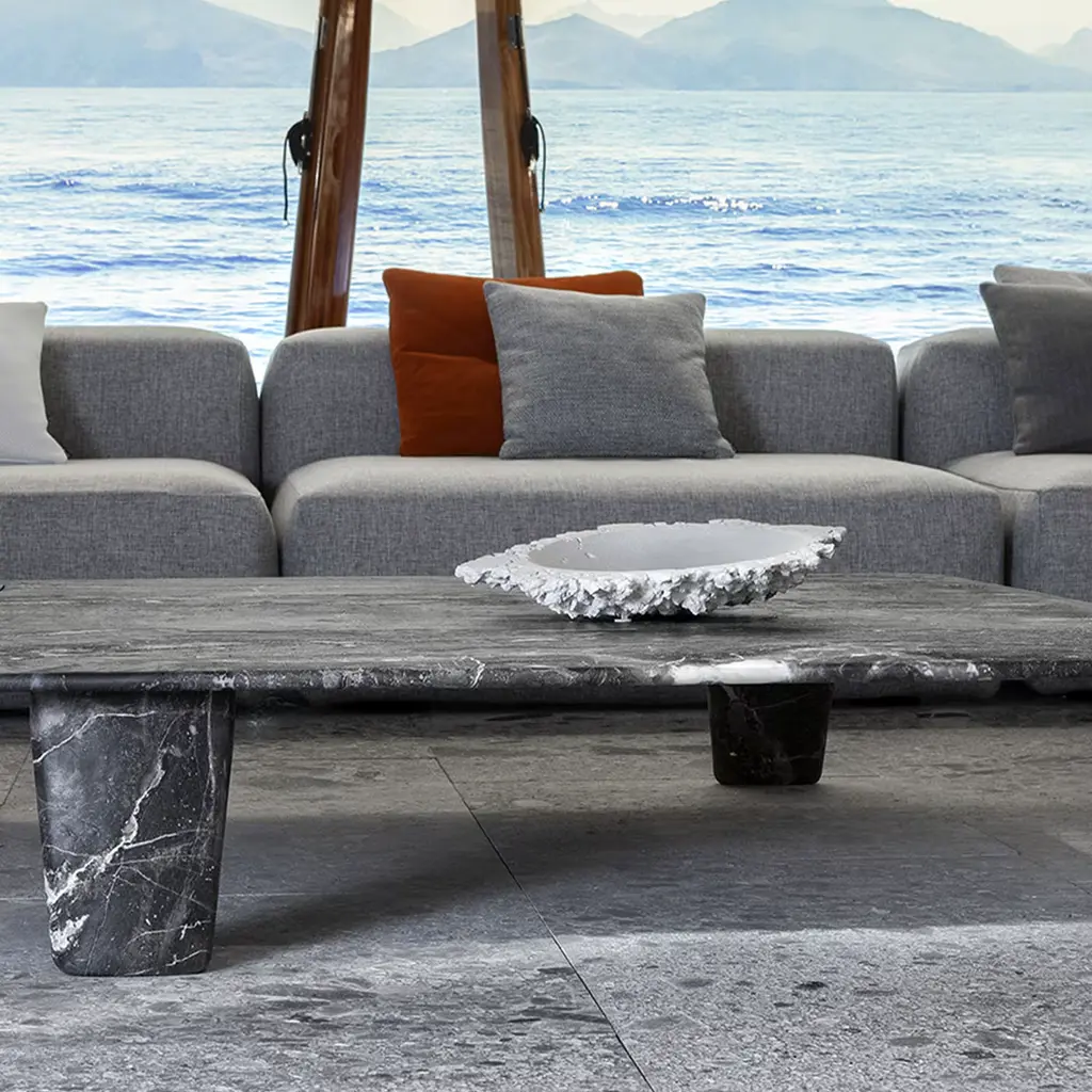 The spectacular natural essence of marble stone is celebrated through the sleek and elegant lines of this gorgeous design by Massimo Castagna. Entirely handcrafted following traditional methods, it features a rectangular top resting on legs placed in an irregular and dynamic way. Entirely customizable. A night cover is recommended to protect the item outdoors, please ask the Concierge for pricing details. If the products are placed completely outside, nightcovers that can be purchased at an extra price are recommended. Please contact the Concierge for further information and options.