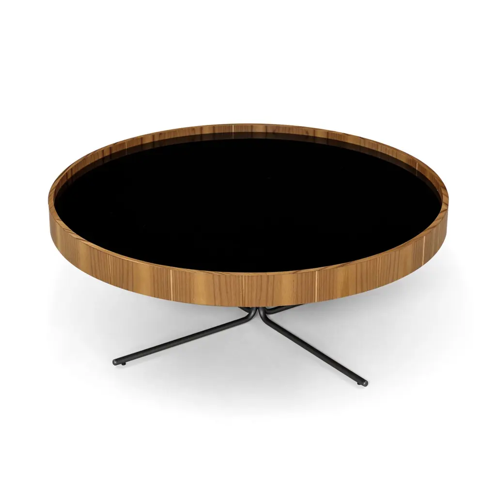Black Glass 39-Inch Occasional Table With Teak Rim - Regia Line