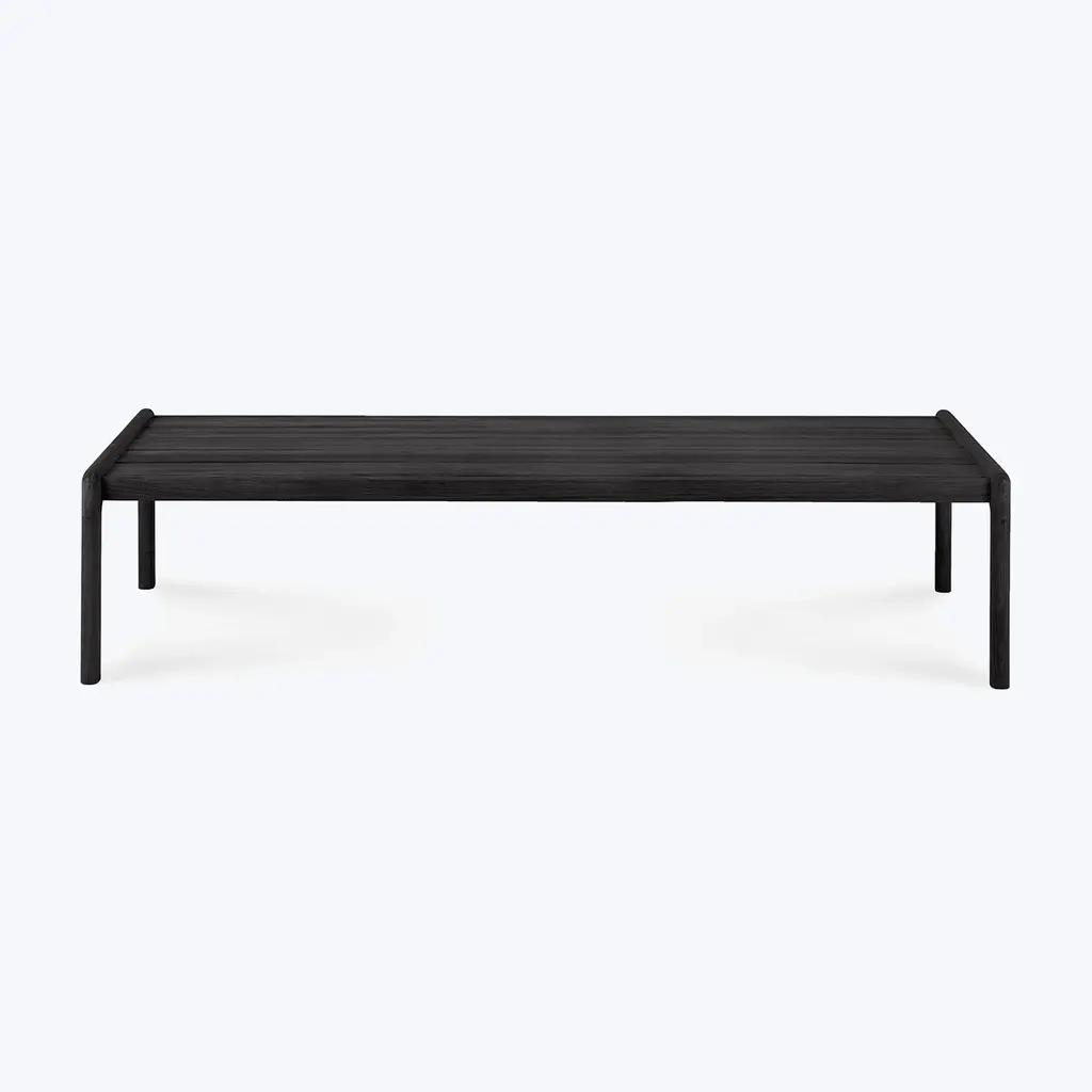 With the same luxuriant shapes and curves as the Jack Collection, the Black Jack Outdoor Coffee Table was designed to attract attention as a single item or arranged together in a composition specific to your needs. This black teak coffee table features a slim form that fits well in both indoor and outdoor environments.