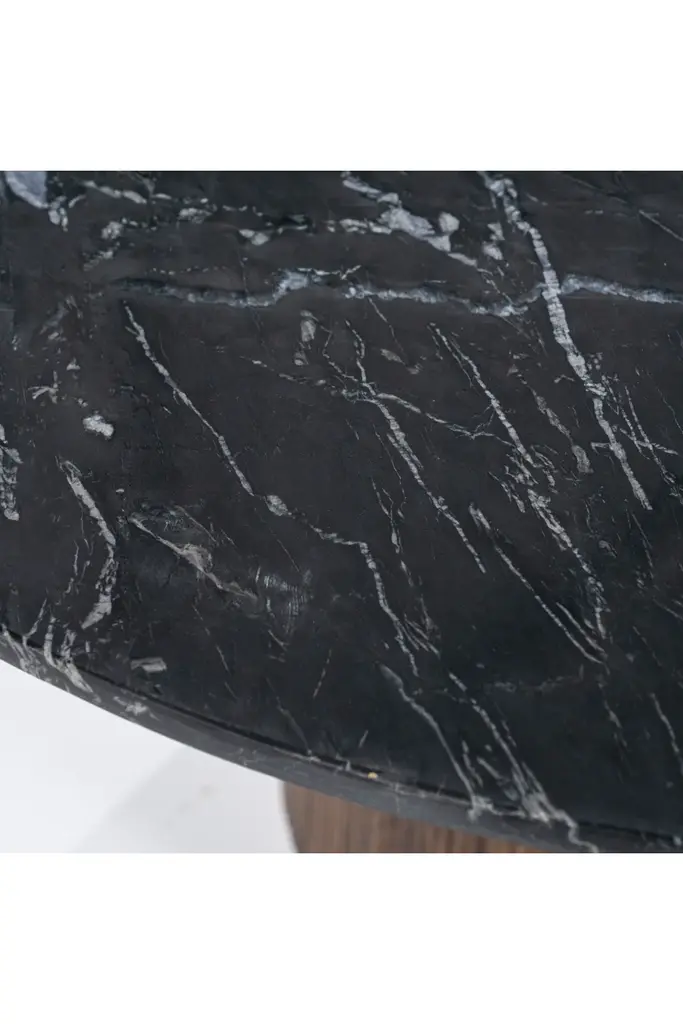 Maxim coffee table by Eleonora carries with it such a fine charm. With an oval black marble top and mango wood pedestal base, this piece is a stylish and functional item to add to your home.