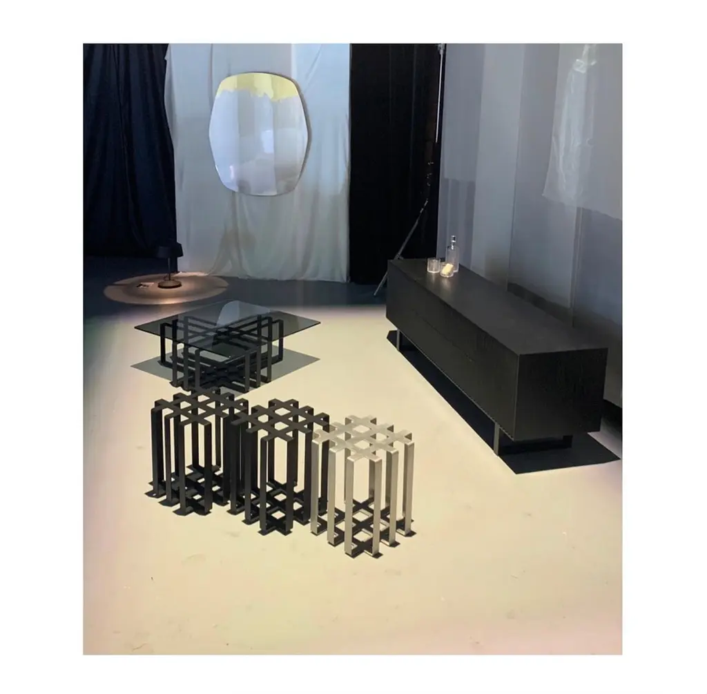 The Ramen coffee table features an asymmetrical frame which creates a focal point in any living space. The extraordinary quality of craftsmanship provides for a seamless finish, as if the frame was cut from a solid piece. The table introduces a variation in geometry to the Ramen side table, which, clustered next to the coffee table may provide additional seating with a sculptural presence. The powder-coated frame supports a grey toughened glass top. Made from powder coated steel. Available in black with smoked glass. Designed by Corinna Warm for Warm and handcrafted in the US by traditionally trained artisans. The coffee table is made to order. Custom colors and sizes are available upon request.