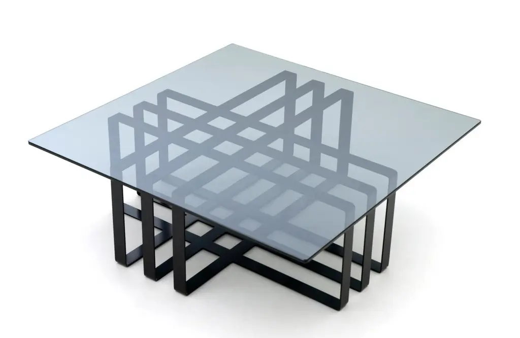 Black Modern Sculptural Metal Coffee Table With Glass Top In Stock