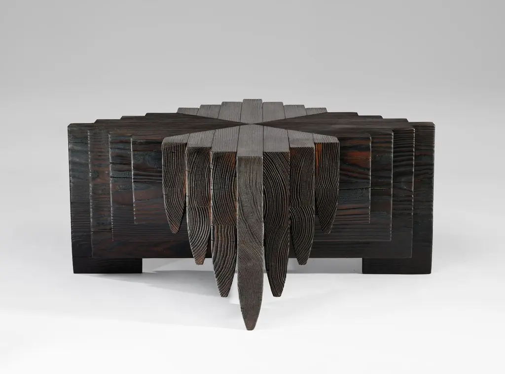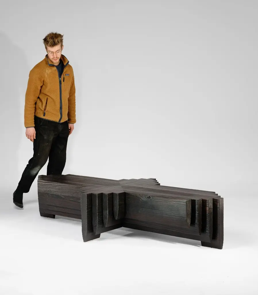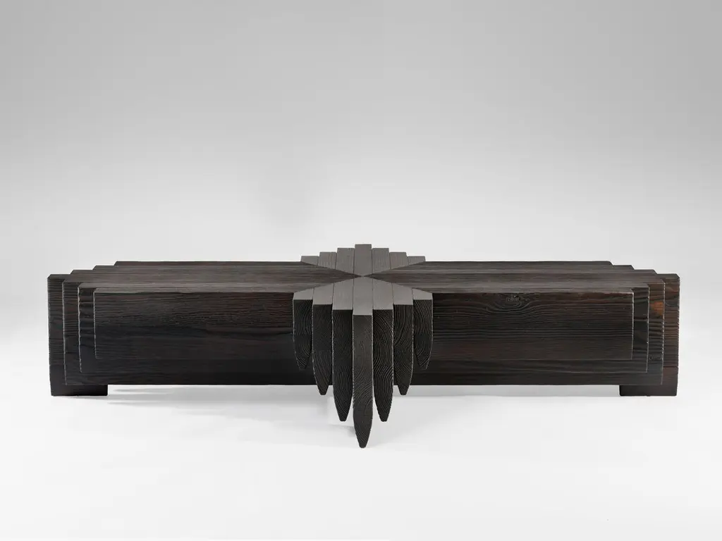Black ‘Shou Sugi Ban’ Burned Solid Navé Cross 220 Coffee Table By Tim Vranken
