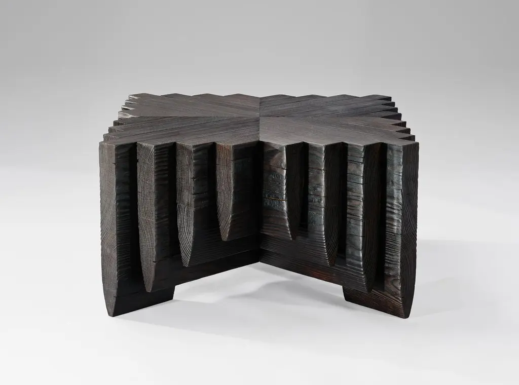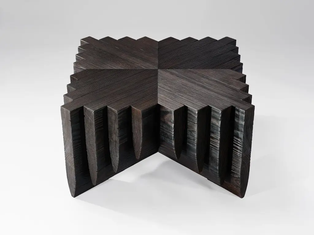Black ‘Shou Sugi Ban’ Burned Solid Navé Cross 94 Coffee Table By Tim Vranken