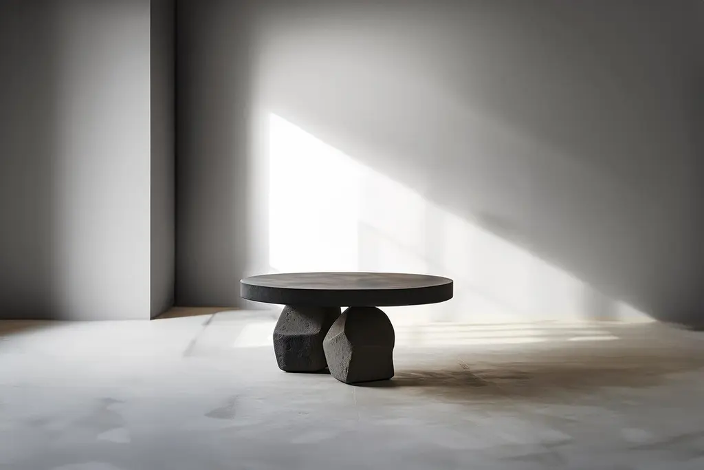 Black Tinted Round Coffee Table - Bold Silhouette Fundamenta 46 by NONOSculptural coffee table made of solid wood with a natural water-based or black tinted finish. Due to the nature of the production process, each piece may vary in grain, texture, shape or even size.—Fundamenta Collection by NONO: Foundations and FrontiersThe Fundamenta Collection is where the core of design meets the edge of innovation. It's a celebration of fundamental forms that are the building blocks of aesthetic and functional design. Yet, it's also a testament to the restless spirit of creativity that drives NONO. This collection embodies designs that are essential – the classic shapes and essential lines that form the basis of every interior. But in the same breath, it ventures into new territories, experimenting with forms, materials, and concepts.A Canvas for Creative ExplorationIn the Fundamenta Collection by NONO, the basics become a canvas for exploration. Each piece, while grounded in fundamental design principles, is an opportunity to push boundaries. This collection isn't just about creating what's essential; it's about reimagining these essentials. It's where new ideas take shape, where the unexpected becomes the new baseline, and where the everyday is transformed into something extraordinary.Balancing Act: Timeless Yet ContemporaryThe Fundamenta Collection finds harmony in balancing timeless designs with contemporary explorations. This duality offers a unique proposition – furniture that serves as both a cornerstone of design and a statement of modern creativity. The Fundamenta pieces are versatile, able to anchor a space with their simplicity, yet bold enough to stand as focal points of innovation and style.Beauty lies in the basics, and there's always space for growth and innovation.The Fundamenta Collection from NONO redefines versatility in furniture design, offering an extensive range of typologies tailored to sophisticated tastes. This collection features elegantly crafted side tables, sleek and functional coffee tables, spacious and stylish sideboards, comfortable yet chic seating options, and more. Each piece is meticulously made to order, providing a wide array of customization possibilities in dimensions, shapes, scales, and proportions, along with a rich selection of materials and finishes. Catering to the unique needs of each project and client, the Fundamenta Collection ensures that every item, from a statement-making bookshelf to a minimalist dining table, is a one-of-a-kind creation, imbuing every space with unparalleled individuality and style.—NONO is a Mexican design brand with more than 10 years of experience dedicated to the production of interior furnishings, editions, and custom-made projects. At NONO, we create pieces of extraordinary beauty, accommodating the particular needs and tastes of each client with exclusive high-quality designs.————Some details to consider when placing an order with us:• Catalog images are digitally generated. Actual products may slightly vary in texture, grain, and final finish due to natural material differences. Despite these variations, our expertise ensures each piece maintains high quality and matches the intended design.• All of our products are made to order, and the lead time for standard products is estimated to be 9 to 12 weeks, plus shipping time. However, special pieces or sculptures may require a longer lead time.• We offer customization in dimensions and finish for all of our furniture pieces, which may result in additional charges.• We only facilitate freight services by a third party. The client is solely responsible for any associated import/export taxes, as well as any necessary customs paperwork.• We are not responsible for any damages that may occur during shipping or for any customs-related delays.