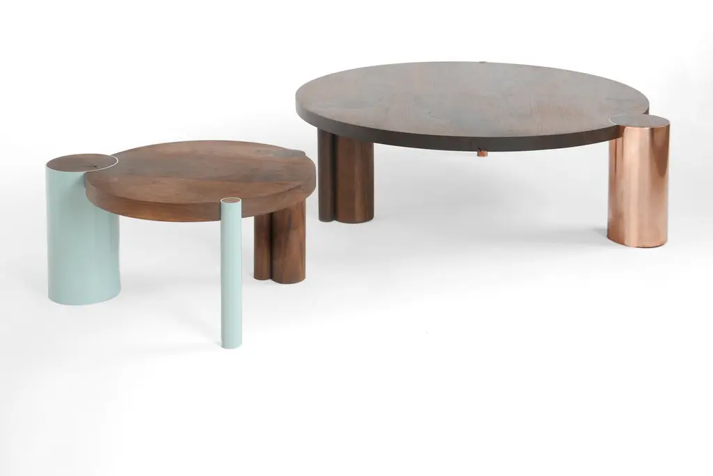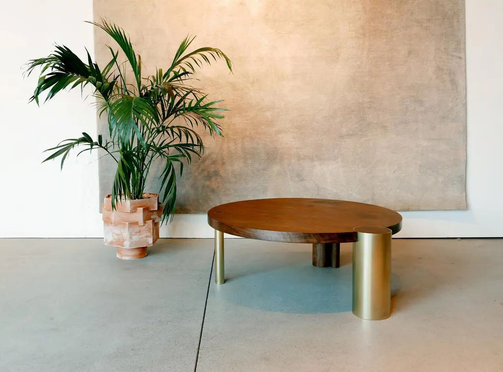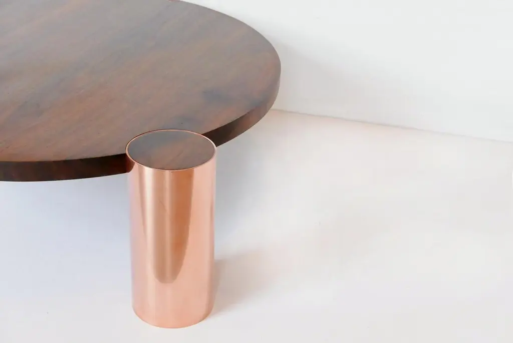 Black Walnut 48" Coffee Table With Copper Feature Leg By Hinterland Design