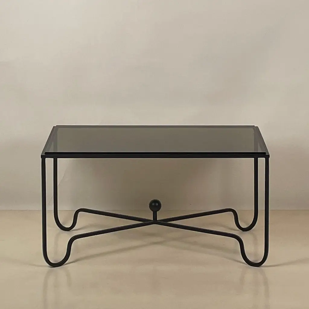 Blackened iron and smoked glass 'Entretoise' coffee table by Design Frères.Chic and understated.