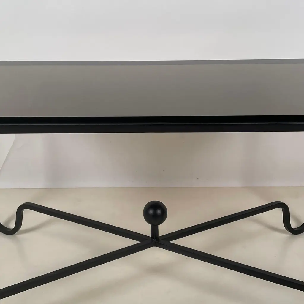 Blackened Iron And Smoked Glass 'Entretoise' Coffee Table By Design Frères