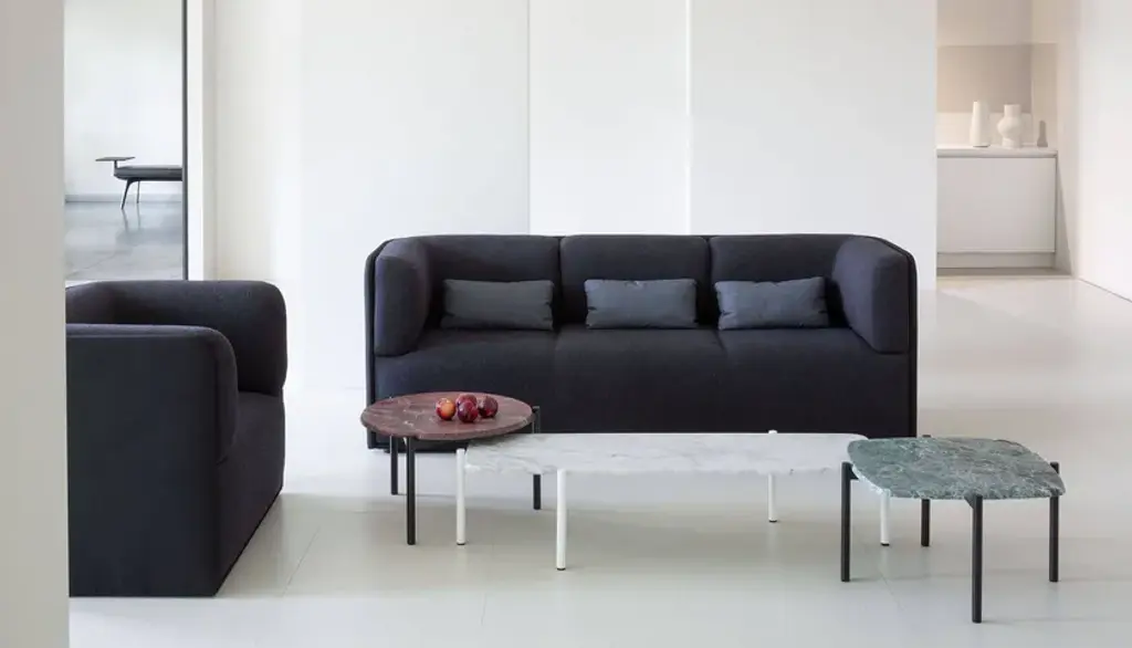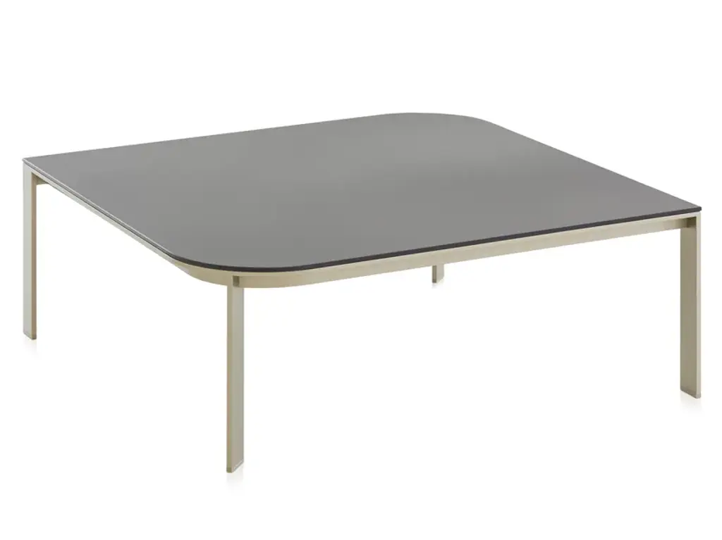 Blade Coffee is a low square table with lacquered Mdf top with painted tubular steel structure.Stackable and modular, low and compact, linear and precious, they are versatile as side tables, complementary, service tables, from home to office. The new coffee tables derive from the Blade family, with which they share the great formal lightness and the marked bevel of the top that lightens the perception of its shape. The collection of lacquered MDF tops is further embellished by the variants in Alpi green, Verona red and Carrara white marble.