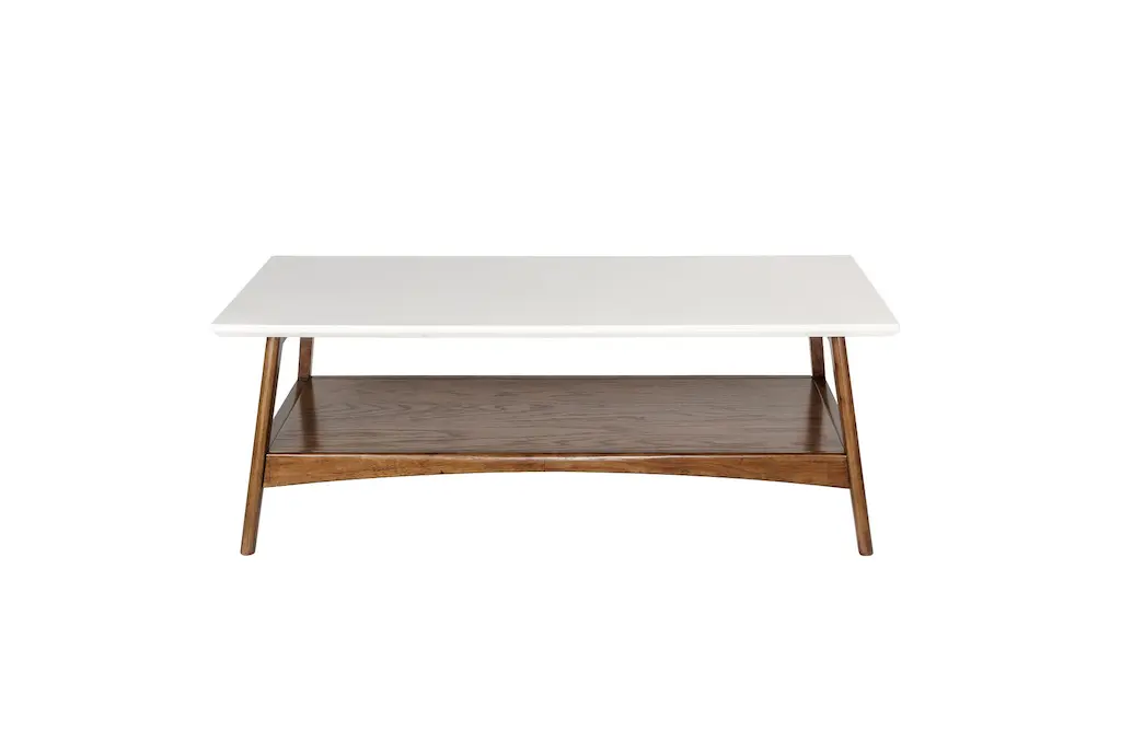 Blaire Brown & White Wood Rectangle Coffee Table | Shelves