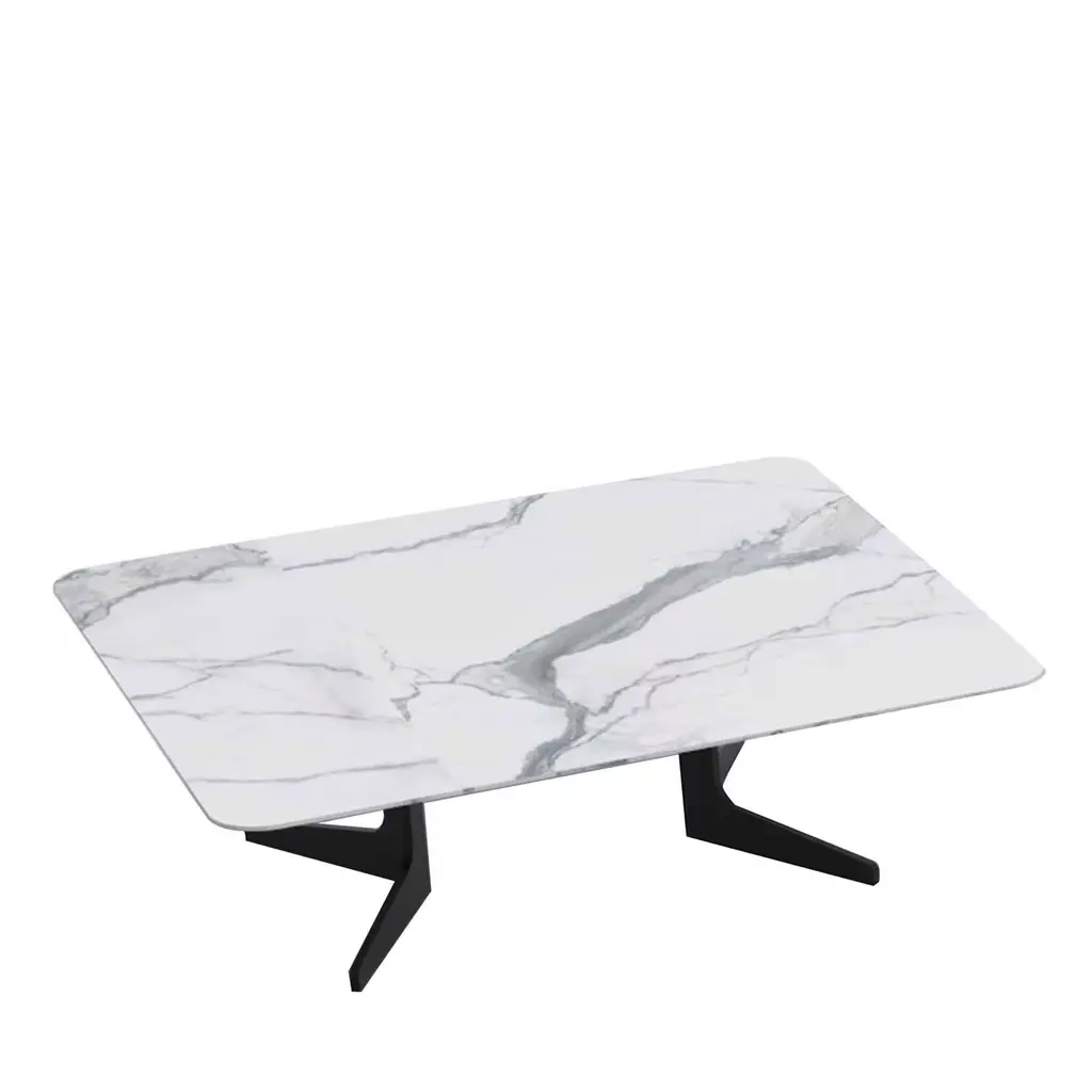 The stunning oval top of white Calacatta marble stands out as statement feature of this refined coffee table. Resting on sturdy metal legs with feet and a matte pewter finish (also available in black nickel or sanded bronze), this superb coffee table is also available with a wooden top or another type of marble, please contact the Concierge for options.