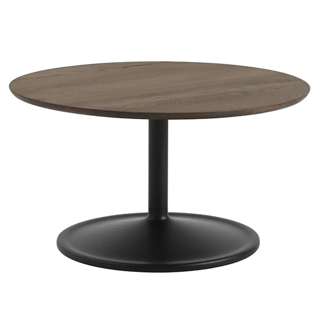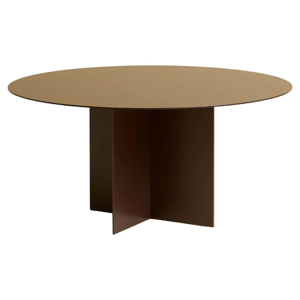 A superb addition to both a modern or classic decor, this coffee table exudes impeccable craftsmanship. Marked by clean, minimalist lines, this piece is composed of a metal tripod base with a matte pewter finish (also available in sanded bronze or black nickel), and a circular top (Ø90 cm) of smoked brown oak wood. This coffee table is customizable in finishes and materials, please consult the Concierge for options.